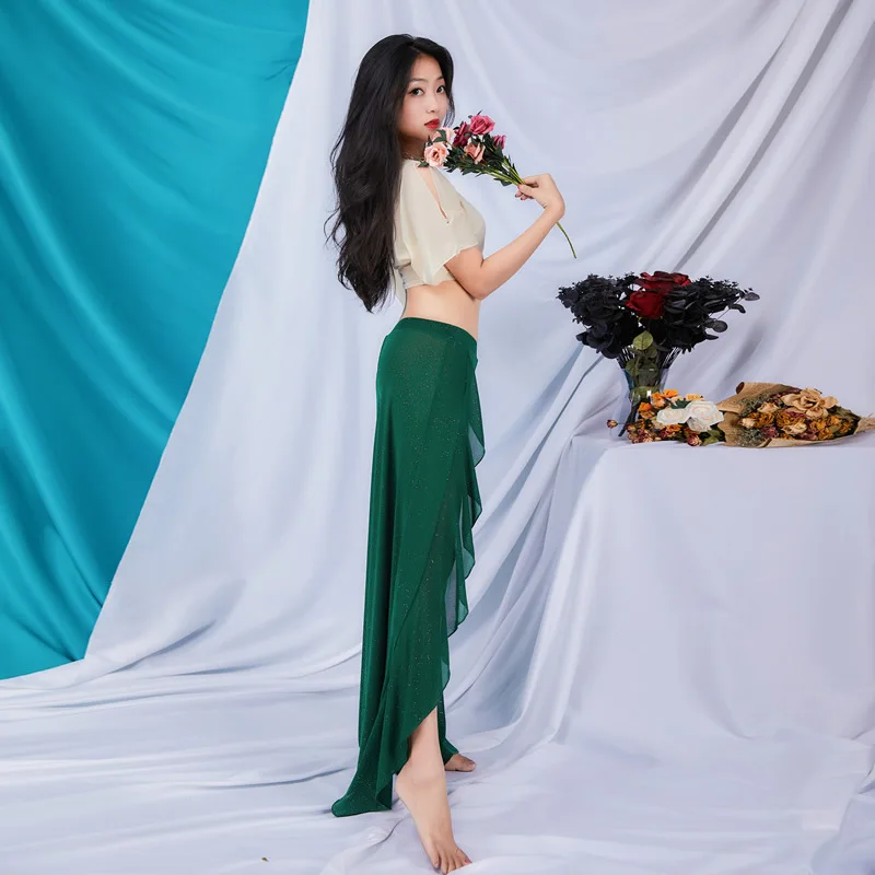 Комплект из 2 предметов, юбка и топ для танца живота, яркие цвета