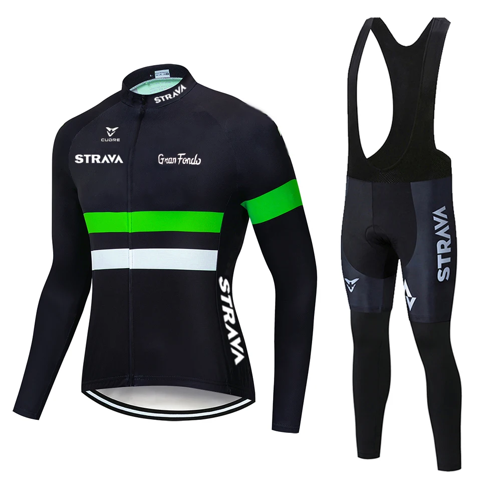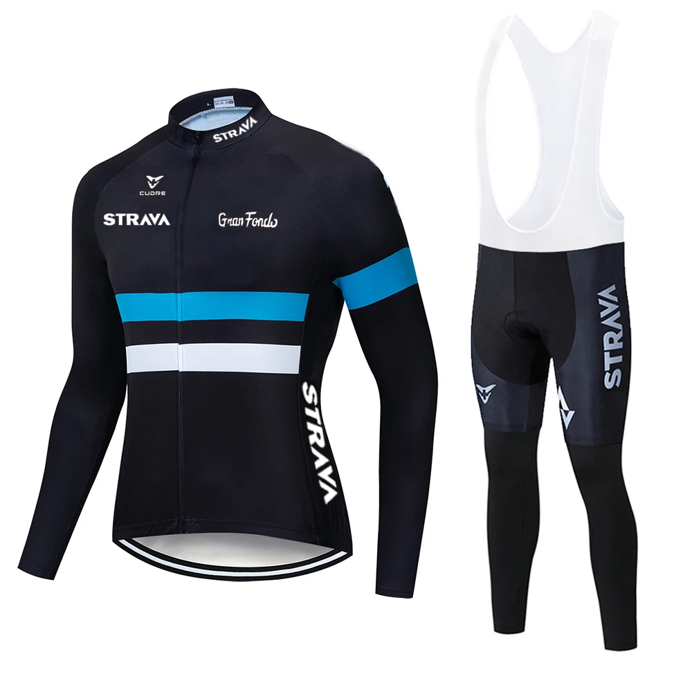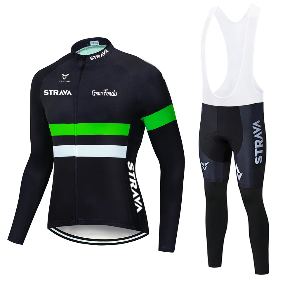 2020 профессиональная команда STRAVA, комплект из Джерси с длинным рукавом и брюк с нагрудником, одежда для велоспорта, Джерси для горного велосипеда, мужская одежда