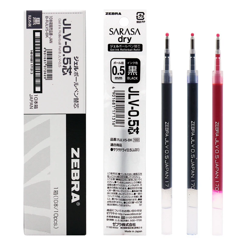 5 шт. Zebra SARASA сухие стержни для гелевых ручек 0,40,5 мм быстросохнущие черные синие красные JLV
