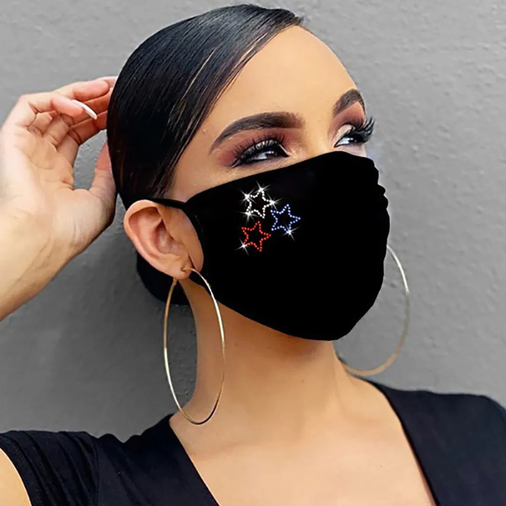 Женская летняя модная маска для лица с инкрустированными бриллиантами двухслойная Пылезащитная маска для лица многоразовая Солнцезащитная маска Mascherina