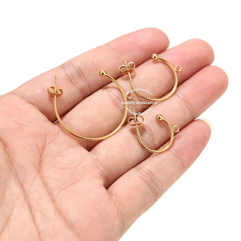 10 шт. позолоченные серьги-гвоздики с петлей в форме C, аксессуары для изготовления ювелирных изделий сделай сам, 15 мм, 20 мм, 30 мм