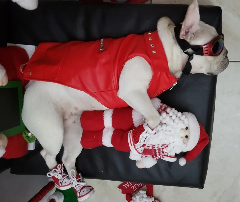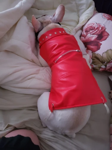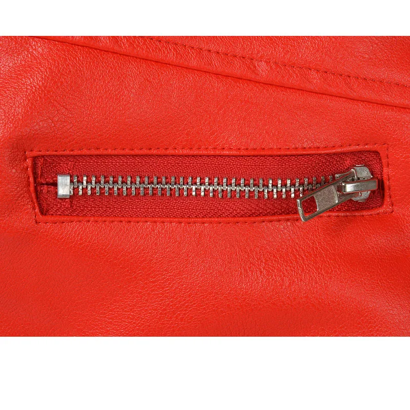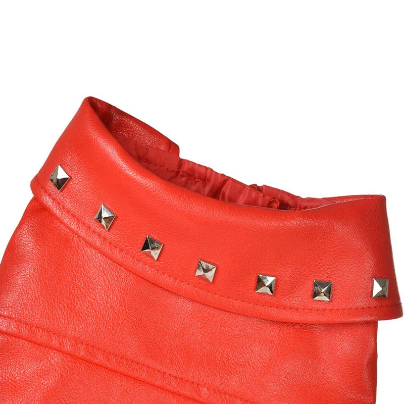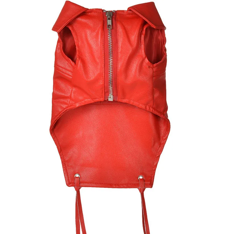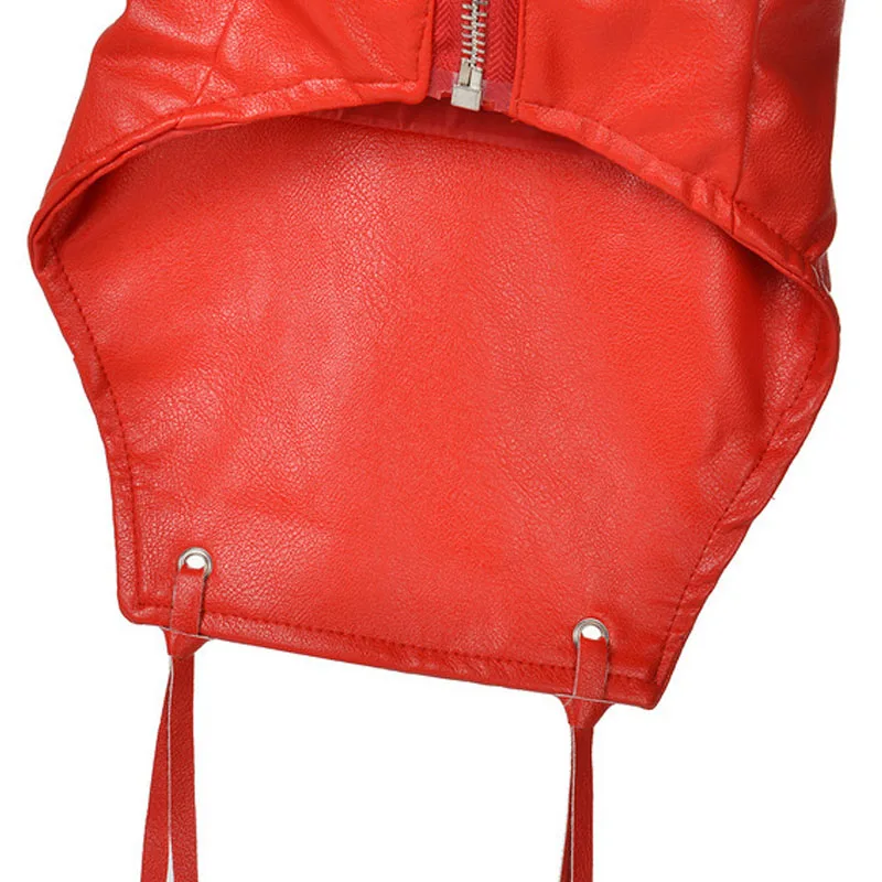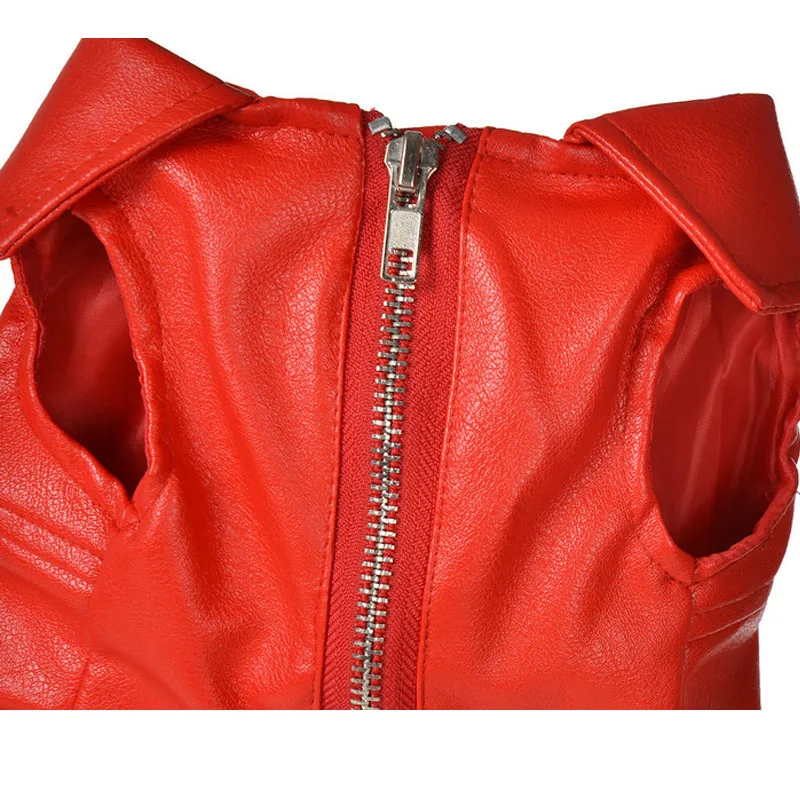 Куртка для собак из искусственной кожи; Цвет красный, черный; Зимняя одежда для собак на молнии с заклепками; Одежда с короткими рукавами для собак; Костюм померанского терьера