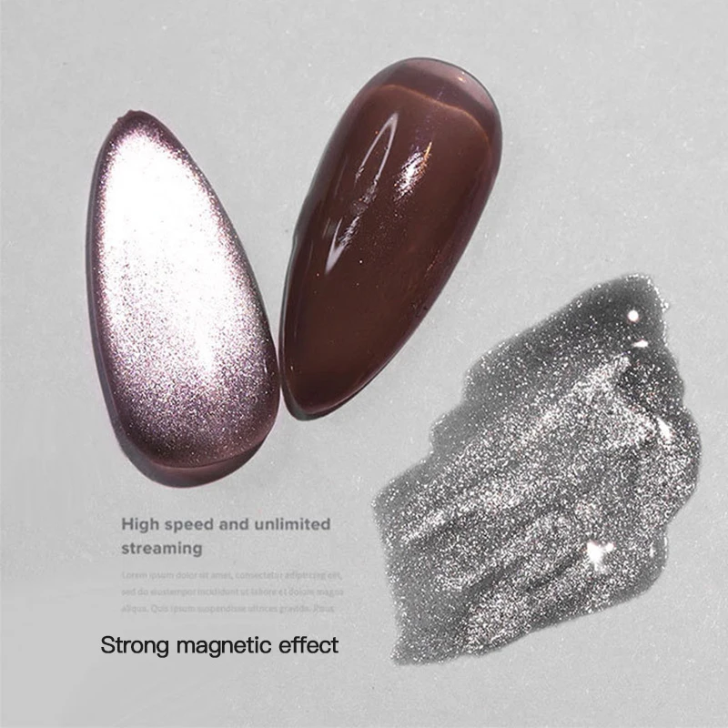 Шаг 5. Нанесите мигающий гель серии Cat Eye, не отверждайте и наденьте магнит на ногти на 10-15 секунд, чтобы получить эффект кошачьих глаз, А затем сразу отверждаем УФ-лампой 2 минуты или отверждаем светодиодный-лампой 60 секунд.
