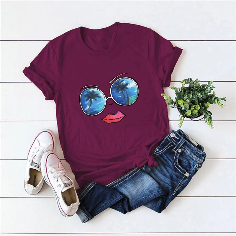 Футболка женская с забавным принтом очков, 100% хлопок, круглый вырез, короткий рукав, желтая рубашка, на лето