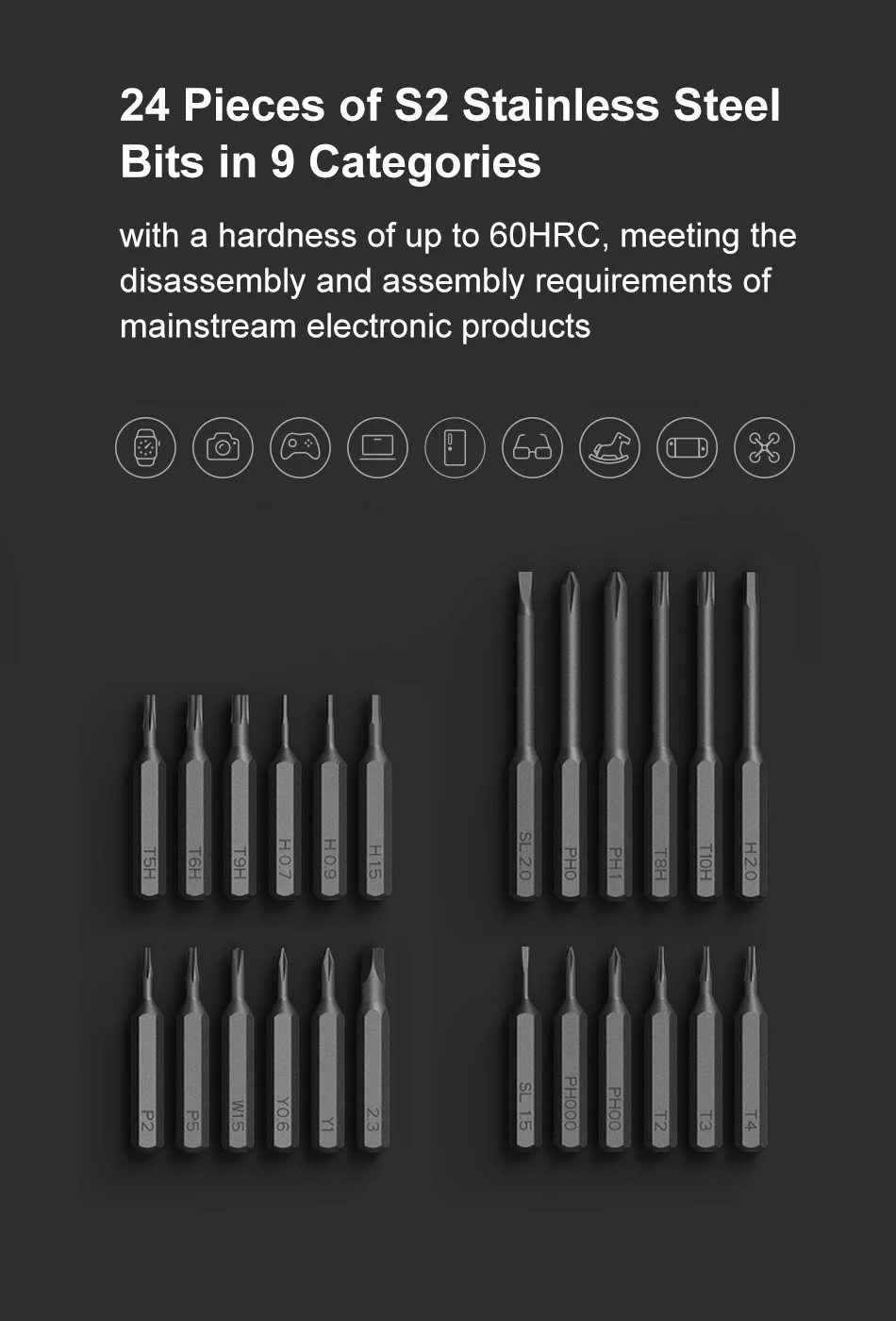 Набор электрических прецизионных отверток Xiaomi Mijia, комплект из 24 стальных насадок S2, цельнометаллический редуктор с зарядным портом Type-C, набор инструментов сделай сам