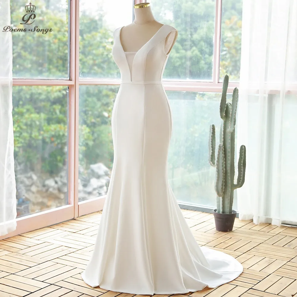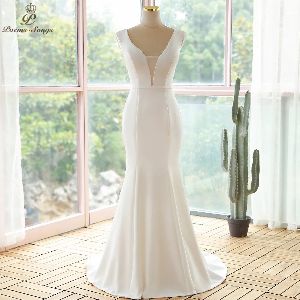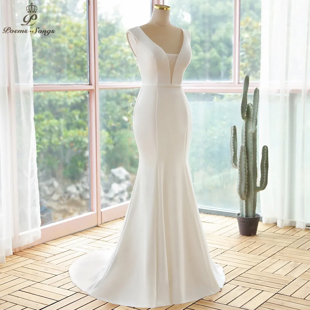 Женское свадебное платье-Русалка It's yiiya, белое элегантное платье с глубоким V-образным вырезом на лето 2021