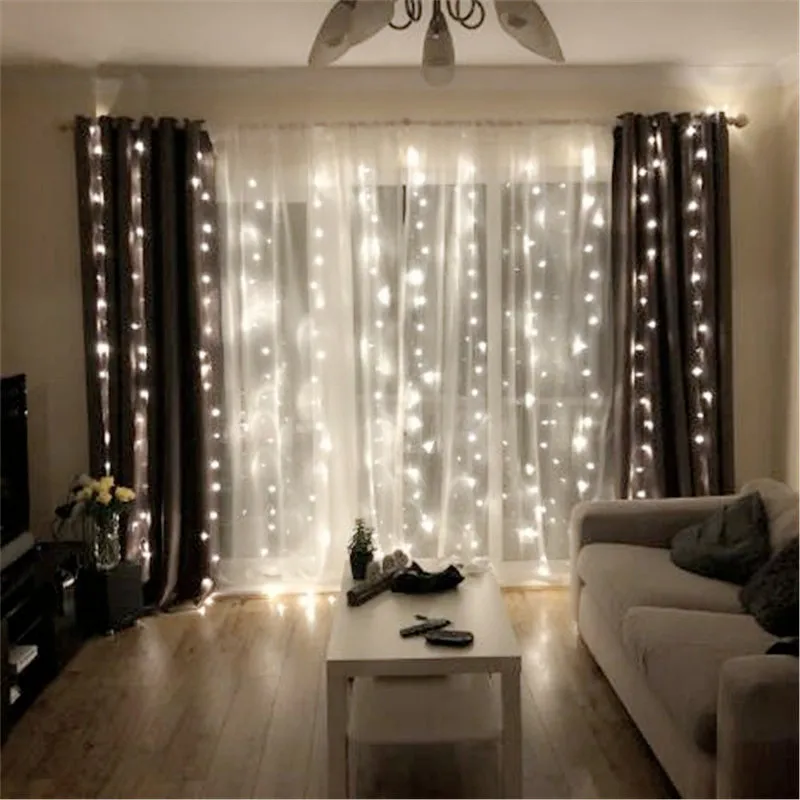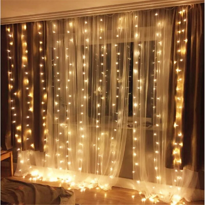Гирлянда-занавеска на окно с дистанционным управлением, лампа для с...