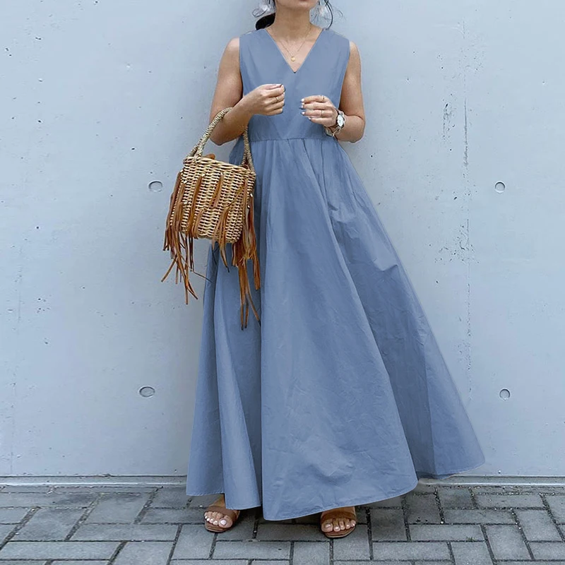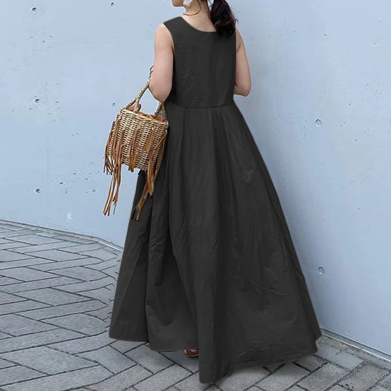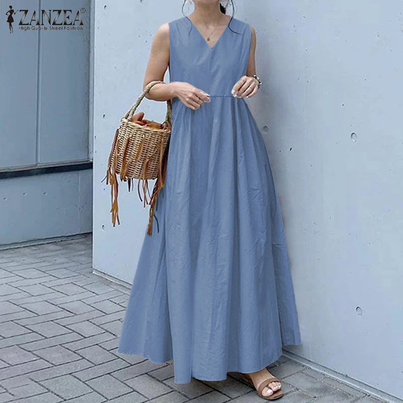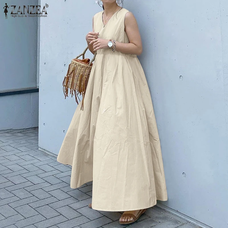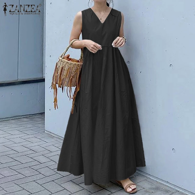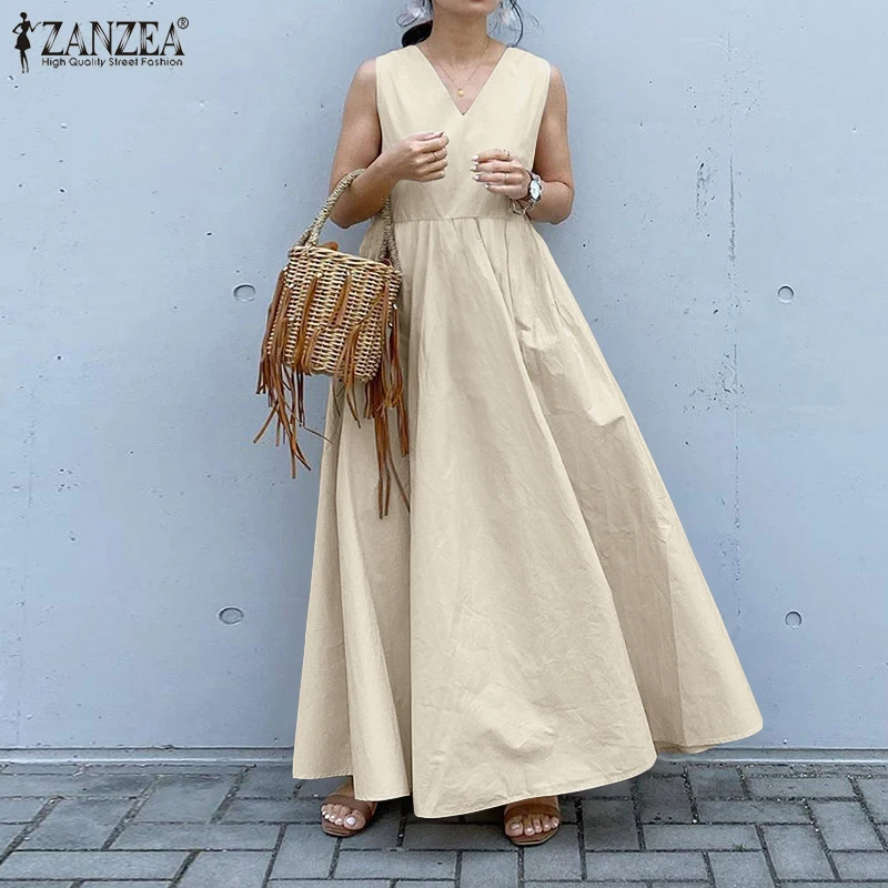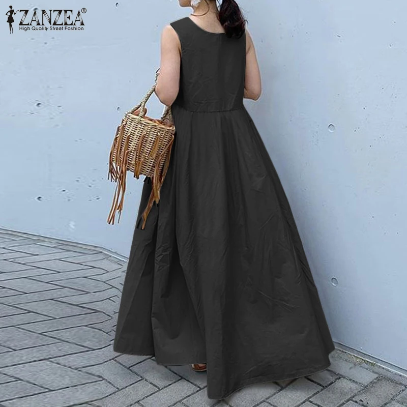 Платье ZANZEA женское однотонное, стильный Повседневный сарафан без рукавов, сарафан в стиле оверсайз, лето 2021