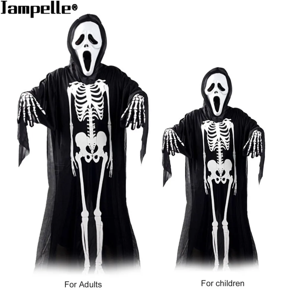 Новый костюм на Хэллоуин Череп Скелет демон дух косплей костюмы с страшной маской взрослые дети карнавал маскарад платье халаты