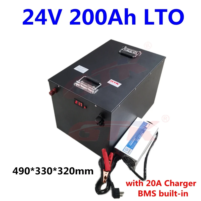 Водонепроницаемый 24V 200Ah LTO 24v 200ah аккумулятор из лития и титана пакет с bms для солнечной системы хранения энергии дома + 20A зарядное устройство