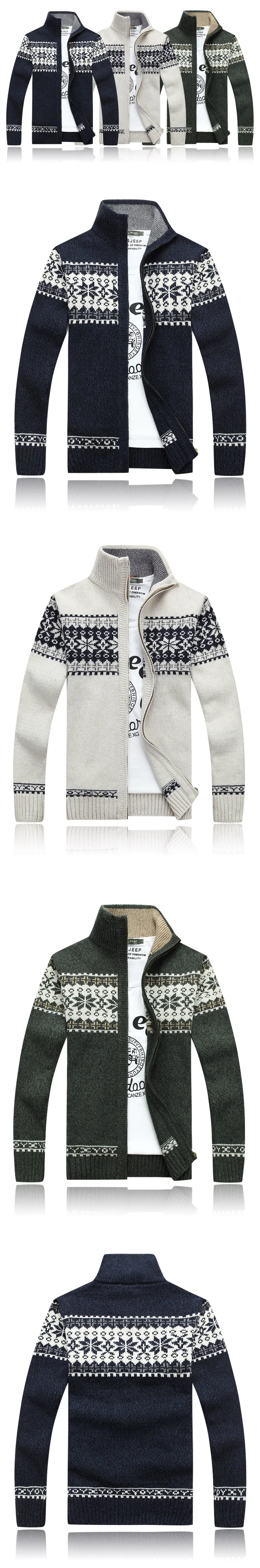 Зимний мужской жаккардовый свитер, пальто, тонкий воротник-стойка, шерстяной вязаный кардиган на молнии, Повседневная Теплая мужская одежда на осень