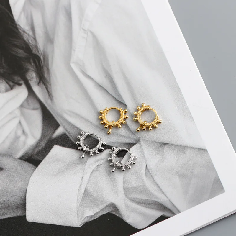Женские и мужские круглые серьги-кольца с бусинами из настоящего серебра 925 пробы в минималистическом стиле в стиле панк и рок, Подарочные ювелирные аксессуары