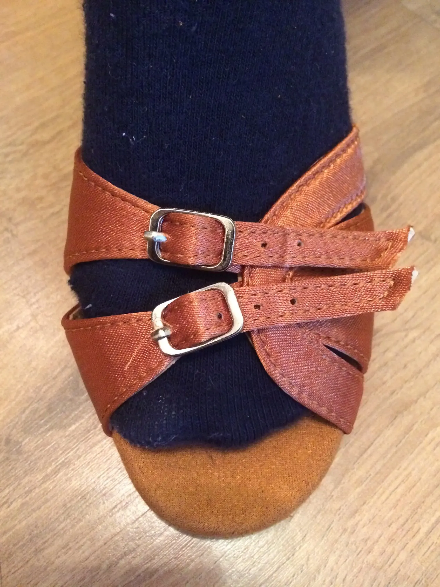 Туфельки хорошие, клея нигде нет. Аккуратно сделаны. На 15.5 см ногу заказала размер 9.5. Получился запас в виде 1 см, как и хотели. На одной из пряжек нехватает стразика, в целом туфельками довольна.