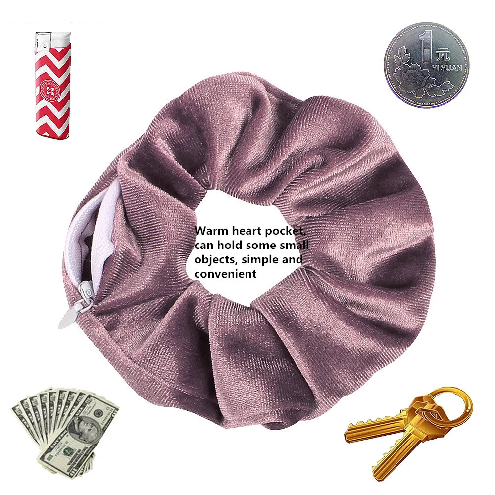 Резинка для волос, бархатная, эластичная, с карманом, на молнии, 1 шт.