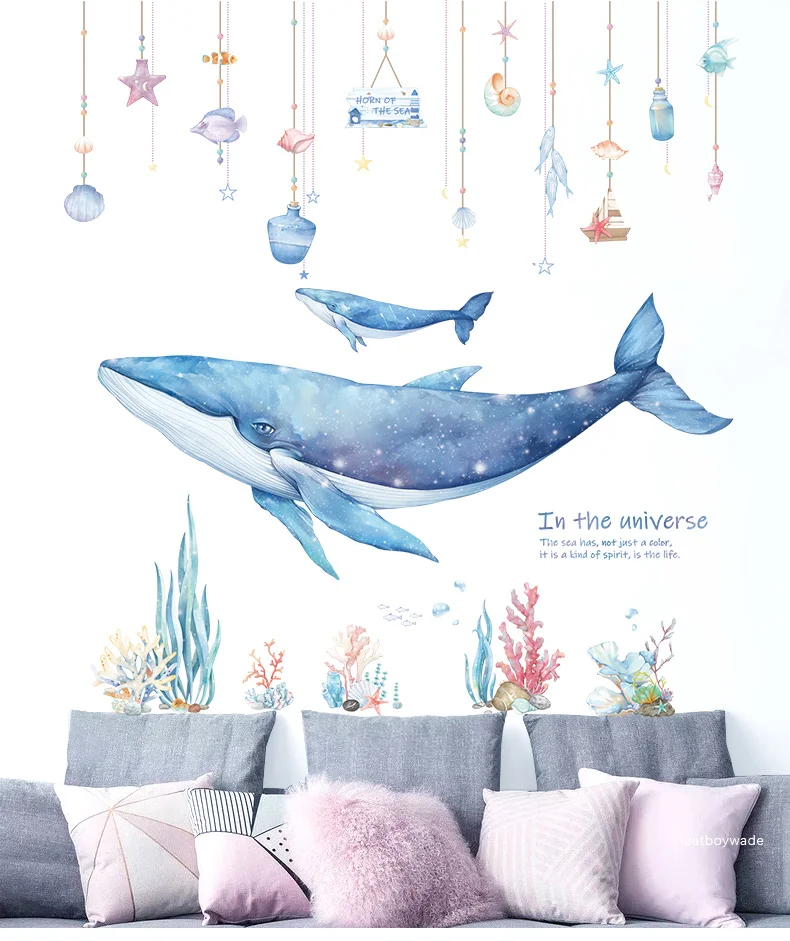 Мультфильм коралловый КИТ Настенная Наклейка для детской комнаты Детский Настенный декор виниловая плитка наклейка s водонепроницаемый домашний декор настенные наклейки фрески