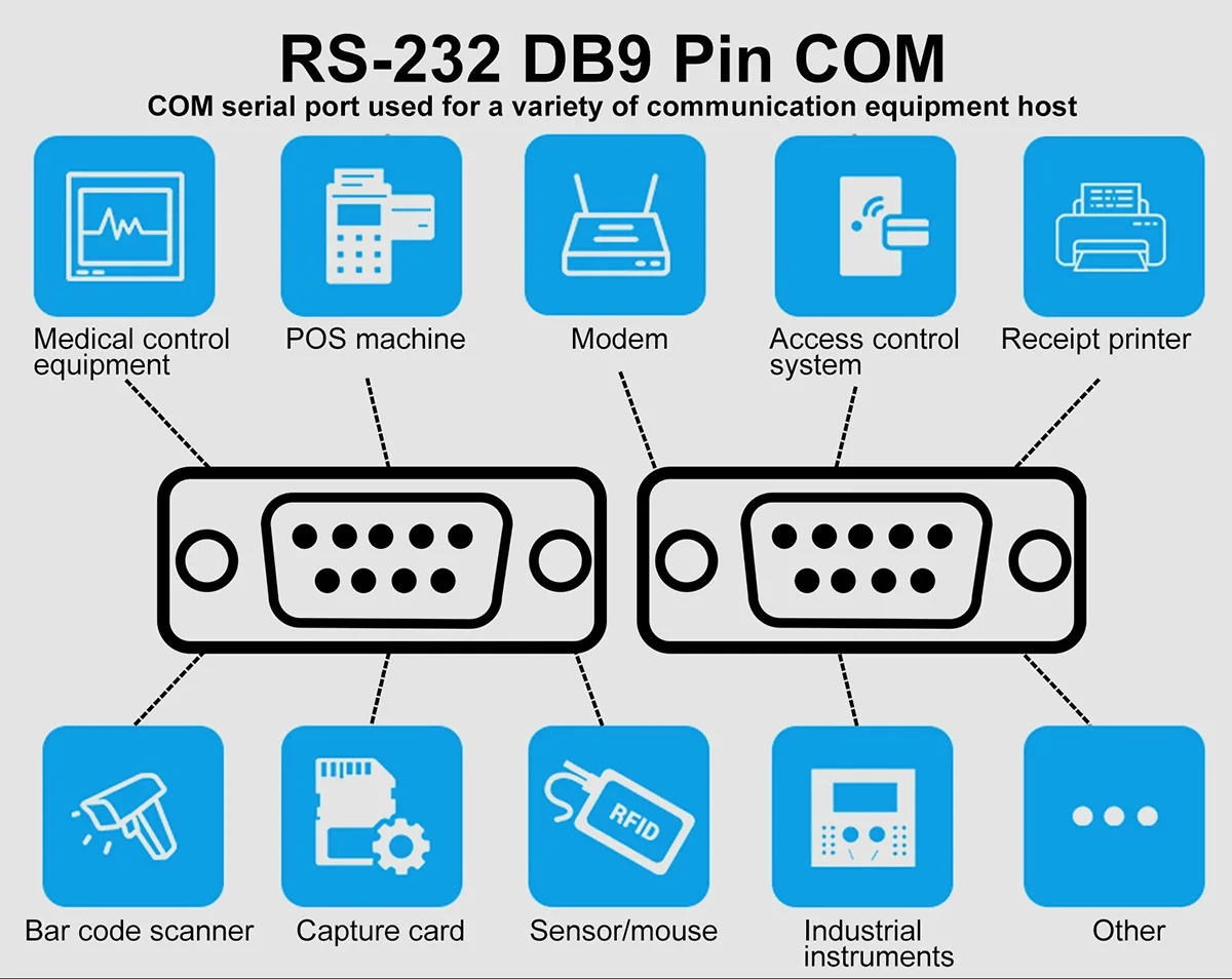 4 * USB 3.0 порт, 2 * RS 232 порт s, 1 * выключатель питания