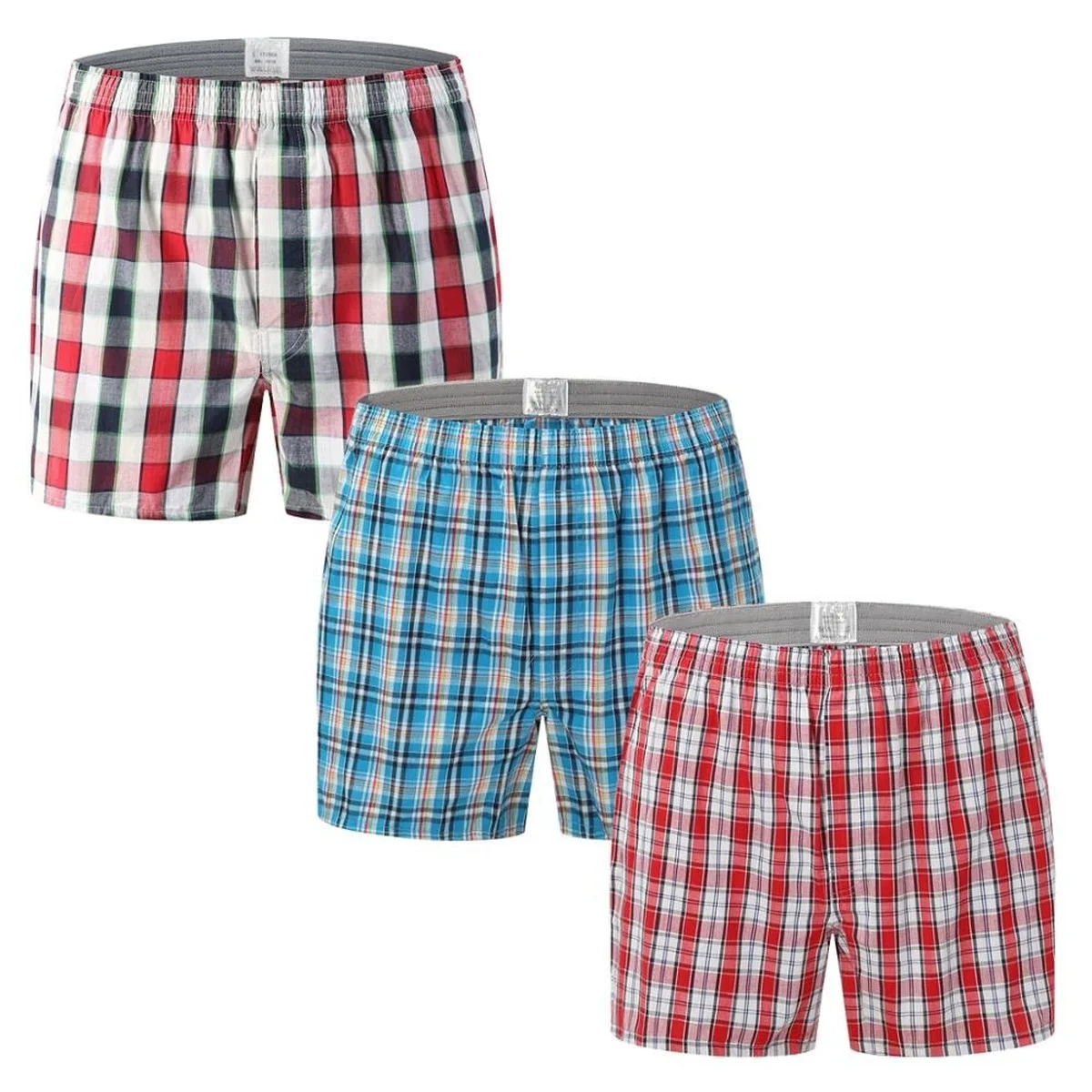 3 шт., мужские хлопковые трусы-боксеры в клетку