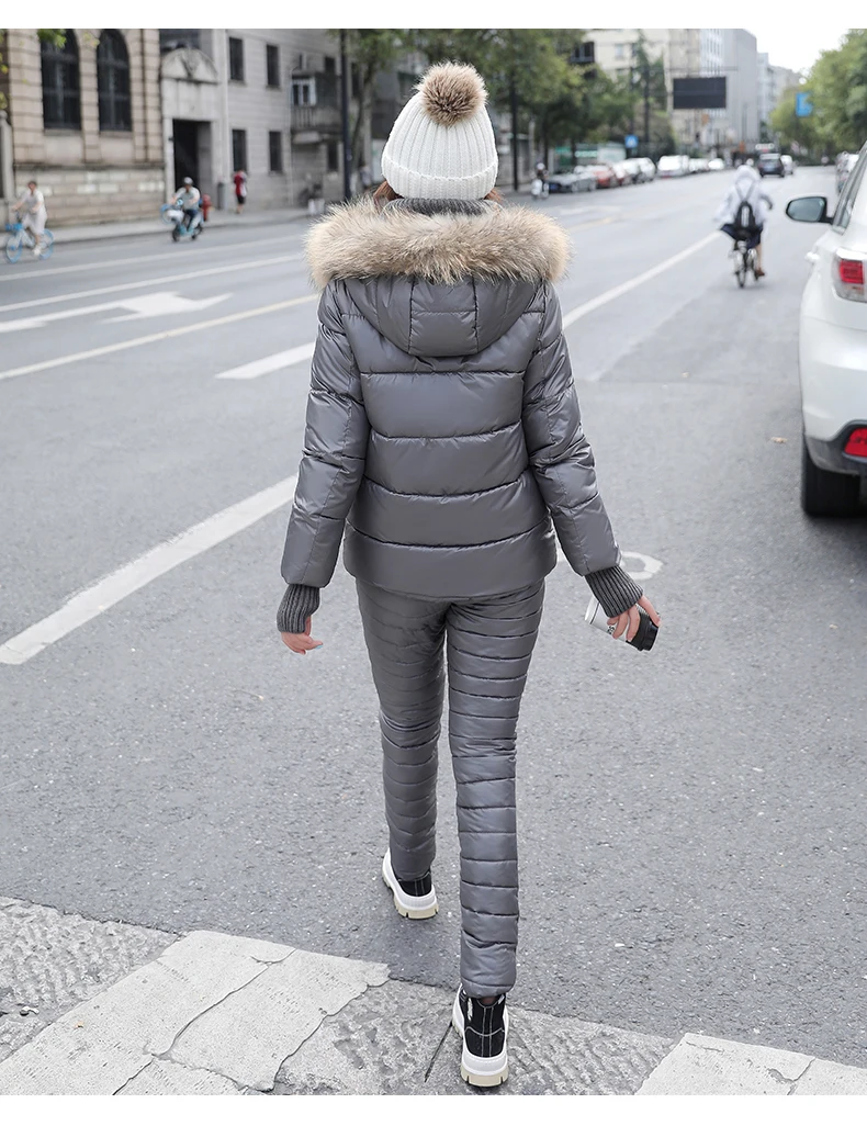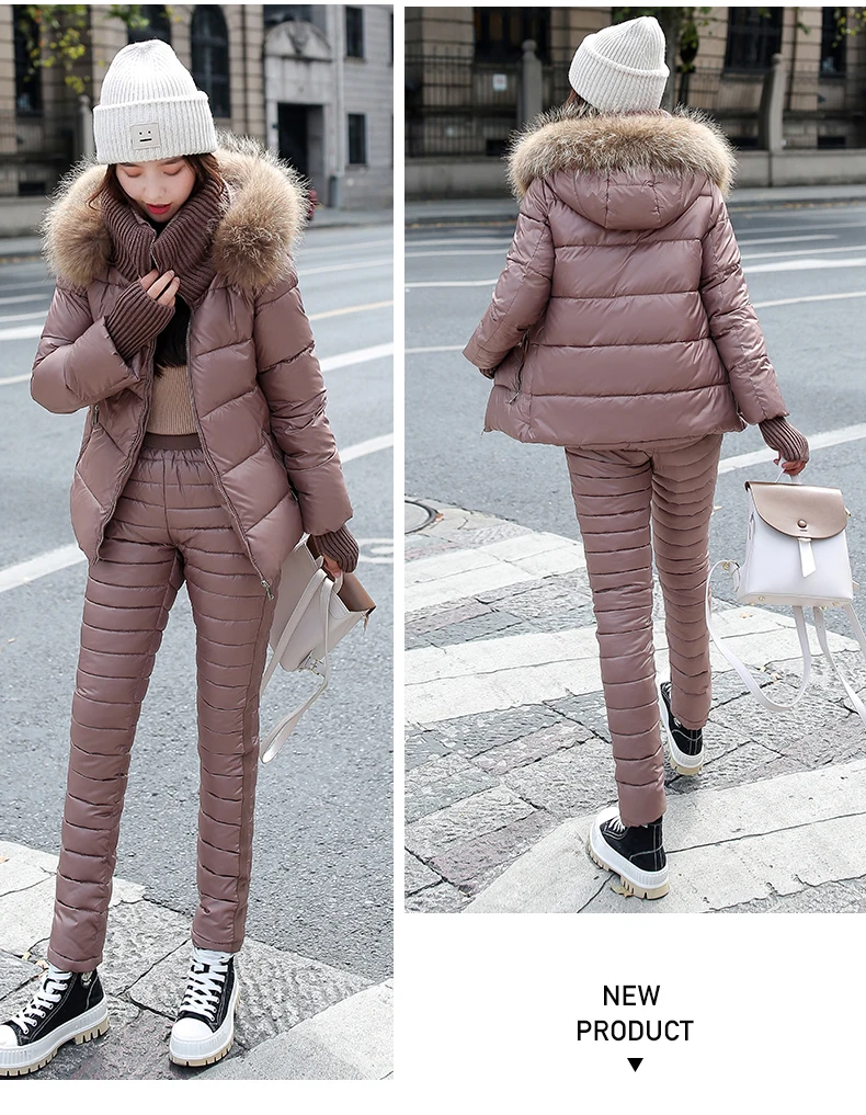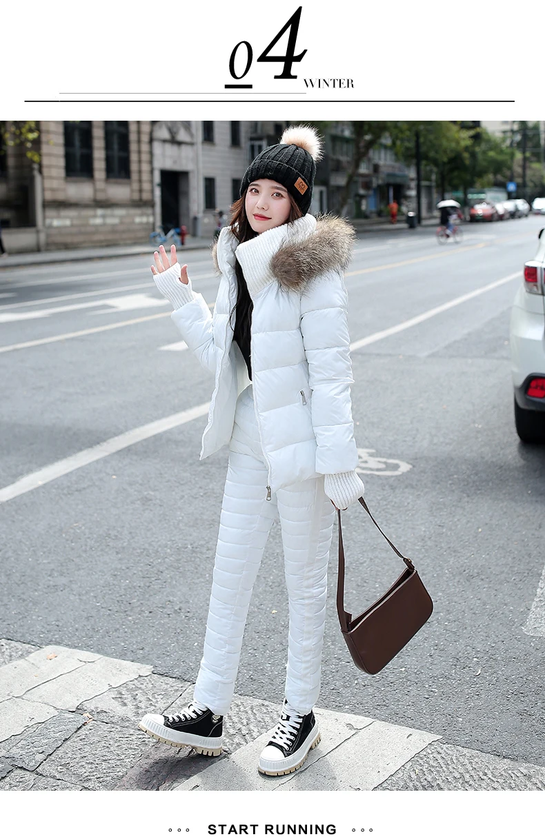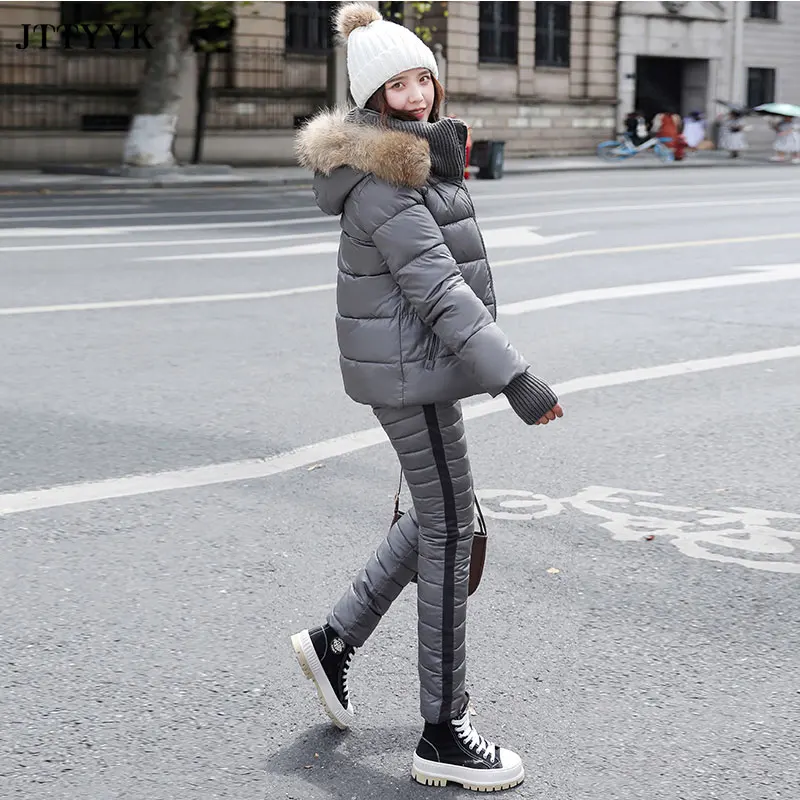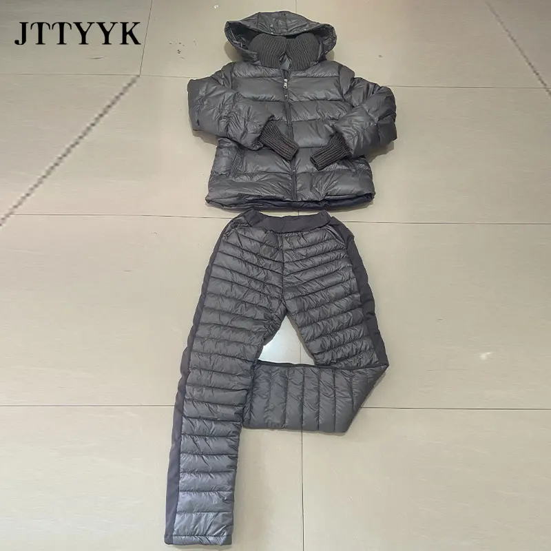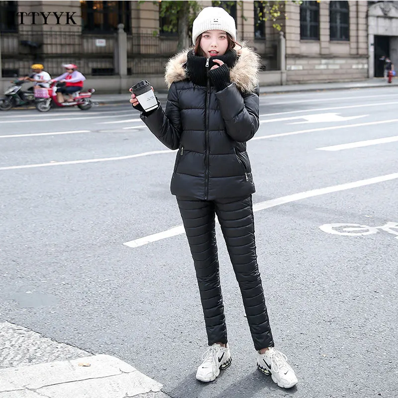 Женский комплект из двух предметов, пальто с капюшоном и длинным рукавом и Хлопковые Штаны, зимняя парка, однотонный плотный повседневный костюм