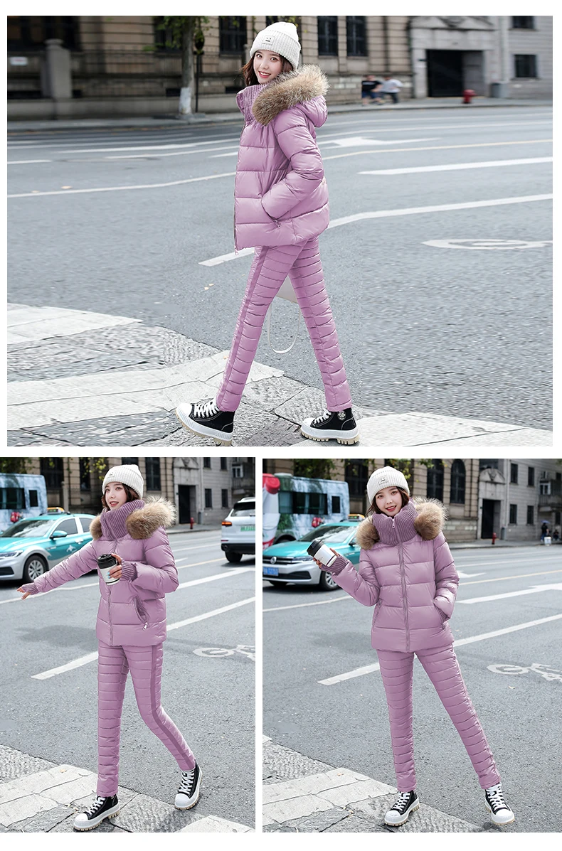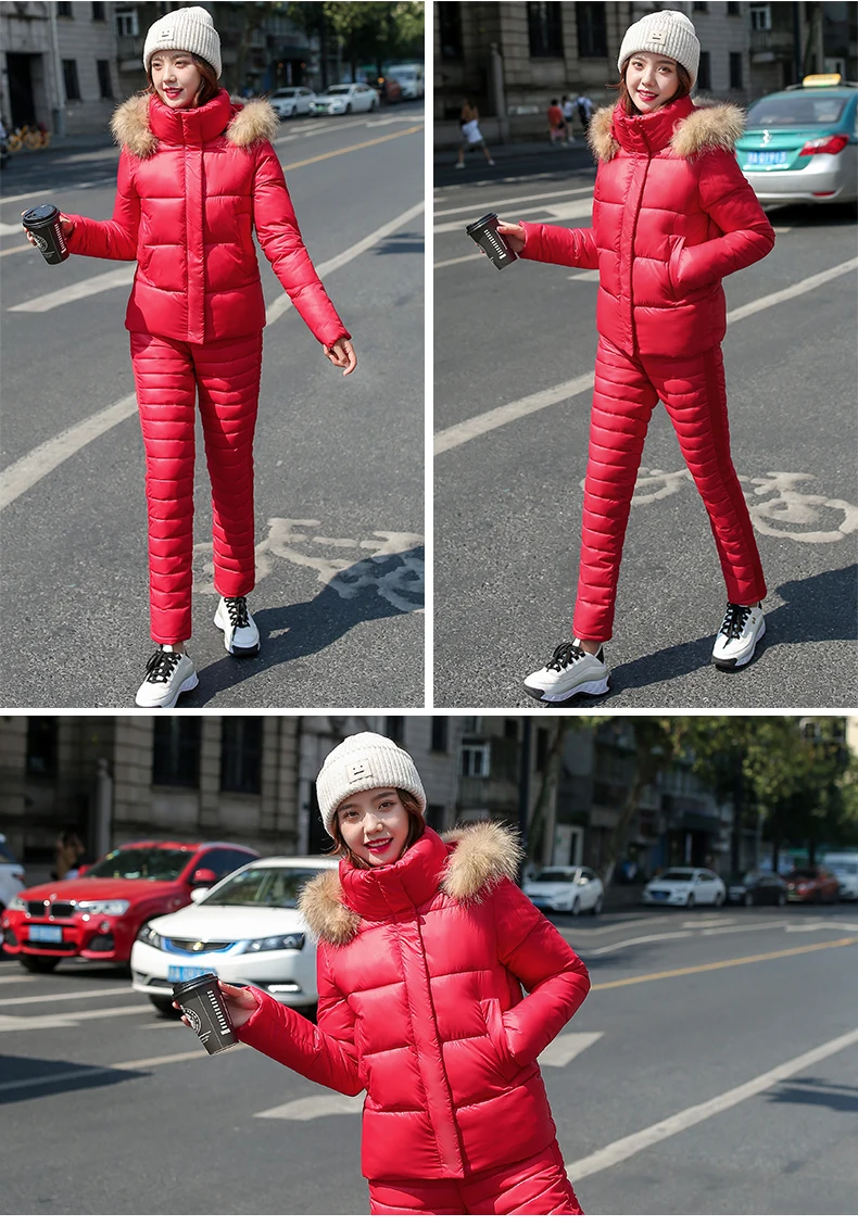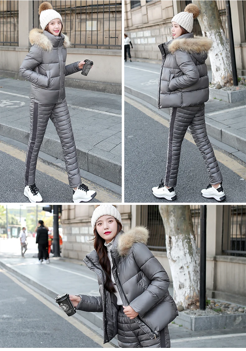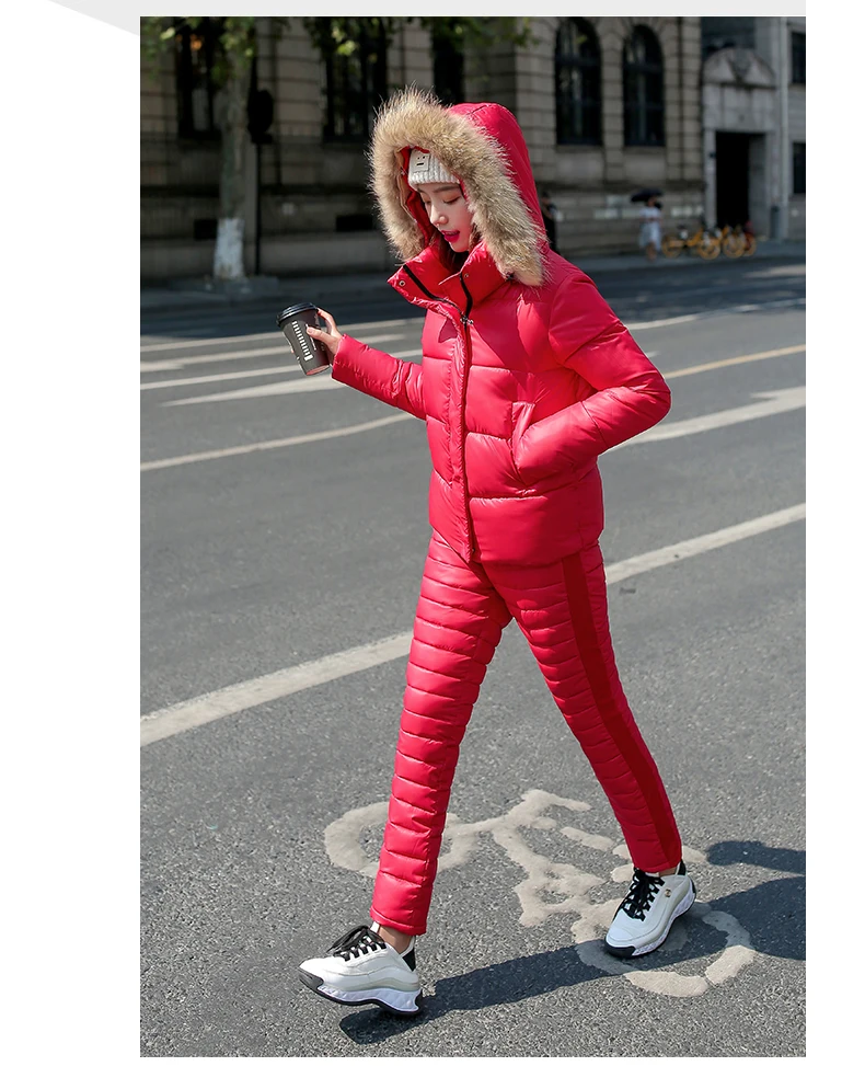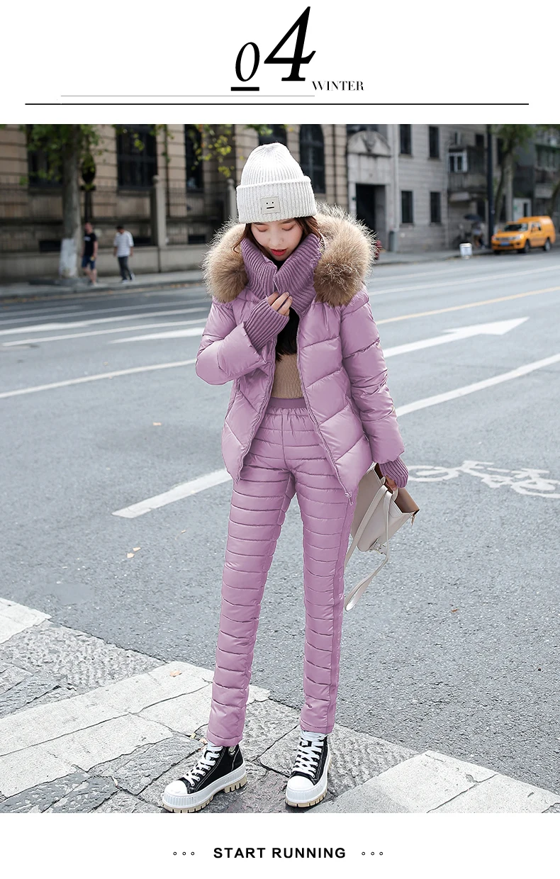Женский комплект из двух предметов, пальто с капюшоном и длинным рукавом и Хлопковые Штаны, зимняя парка, однотонный плотный повседневный костюм