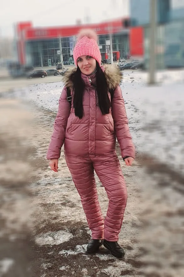 костюм классный, за такие деньги прям супер. на параметры 91-76-96 брала xl сидит хорошо, чуть свободно но как раз снизу одеть термобелье в морозы. мех смотрится норм, не шик, но для прогулок с ребёнком отлично. продавец размер сам подобрал, большое ему спасибо. цвет думала более розовый, а он такой прям тёмный розовый, но это даже хорошо для меня. все супер