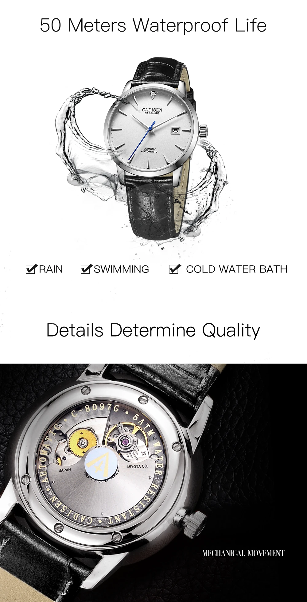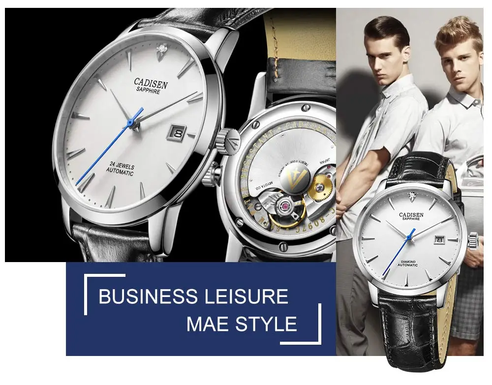 CADISEN MIYOTA 9015 Мужские механические часы брендовые Роскошные автоматические часы для мужчин настоящие бриллиантовые Наручные часы Часы из натуральной кожи