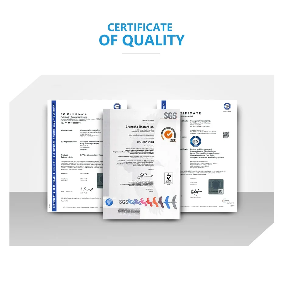 Часто задаваемые вопросы: 1. Лучшее время для измерения: (1) глюкоза в плазме (не менее 8-10 часов без пищи, кроме воды). (2) через 2 часа после еды (время начинается с первого укуса) 2. Нормальный диапазон: (1) глюкоза в крови (FBG): 3,9-6,1 М моль/л (70-110 мг/дл).(2) постпрандиальный сахар в крови (через 2 часа после еды): 3,9-7,8 М моль/л (70-140 мг/дл). * Формула преобразования единиц измерения: Концентрация глюкозы в крови обычно имеет два метода: один-ммоль/л, другой-мг/дл. Две единицы концентрации глюкозы могут быть преобразованы друг в друга, коэффициент преобразования составляет 18. Преобразованный из ммоль/л в мг/дл-это бывший (ммоль/л) умножьте 18; И наоборот, на мг/дл в ммоль/л-бывший (мг/дл) делится на 18. 3. Тестовый образец: (1) следует дождаться полного испарения спирта, так как остаточный спирт влияет на измеренные значения. (2) первую собранную вами кровь Нельзя использовать в качестве тестового образца, поэтому ее можно смешать с тканевой жидкостью. 4. Использование: Кровь должна быть закрыта к краю тест-полосок, чтобы она эффективно впитывала кровь тестовой бумагой. И она должна положить кровь на другую сторону бумаги, которая близка к небольшому отверстию в верхней левой части. Затем поверните аппарат на 45 градусов и подойдите к этому всасывающему отверстию. 5. Ошибки: Погрешность от 15% до 20%. Отклонение в результатах тестирования может быть вызвано неправильной эксплуатацией, диетой или изменением эмоций. И погрешность теста глюкометра составляет менее 20%, что не влияет на лечение пациентов.