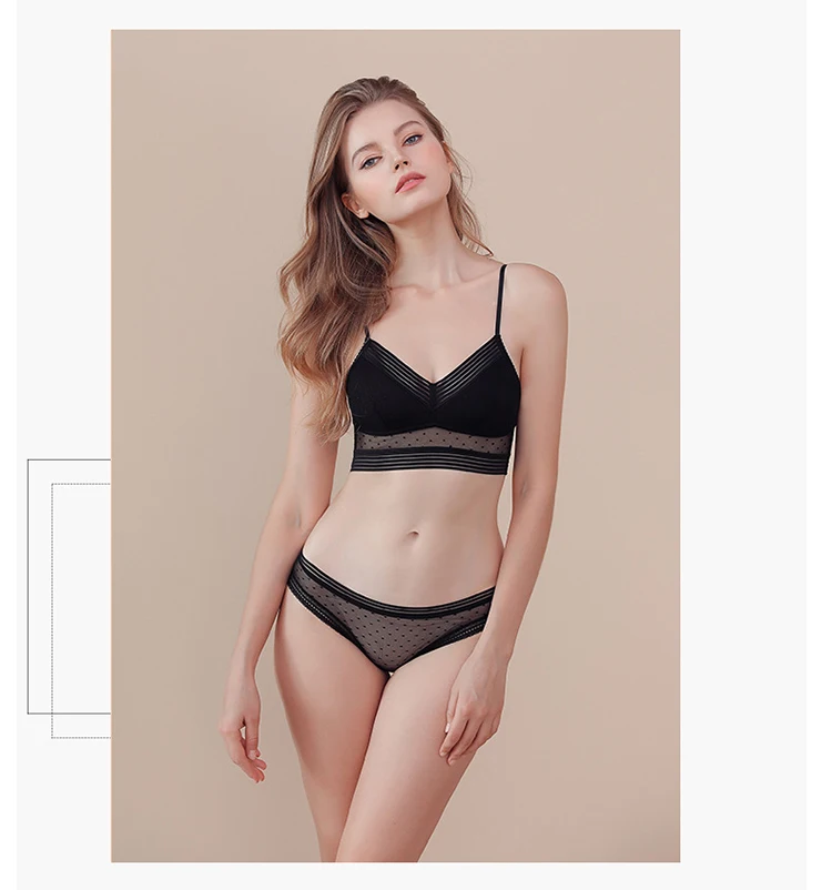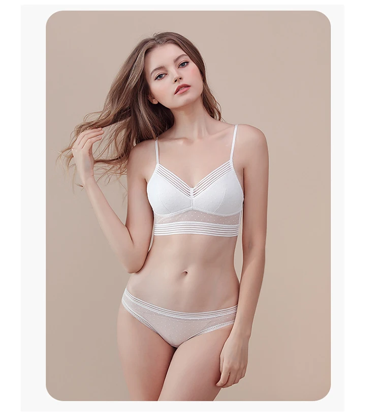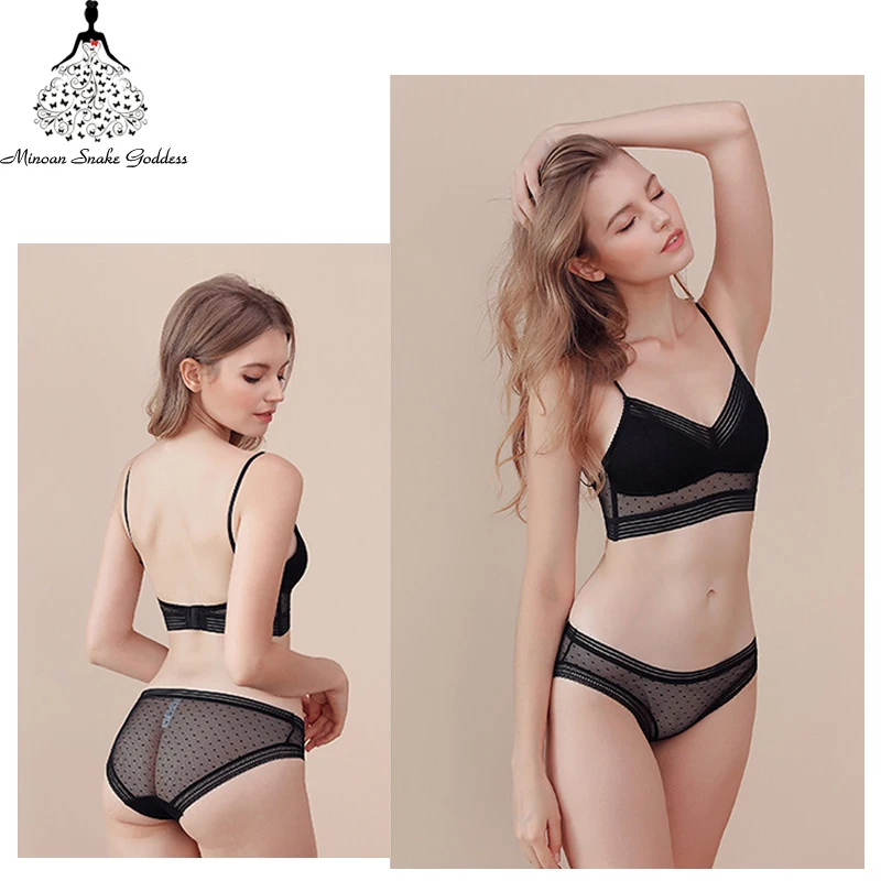Женский комплект нижнего белья, бюстгальтер пуш-ап, сексуальное нижнее белье, бюстгальтер с открытой спиной, тонкий кружевной бюстгальтер в горошек, сетчатый бюстгальтер