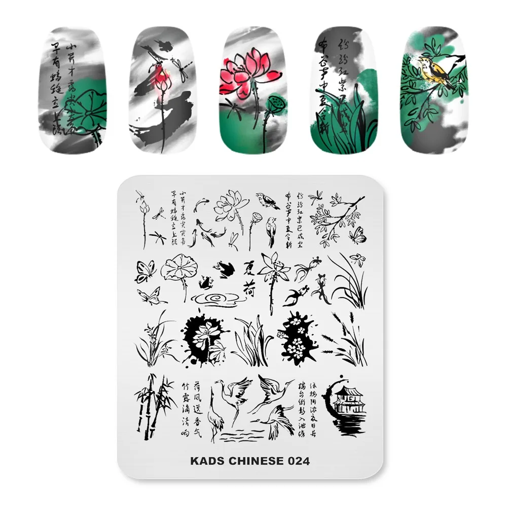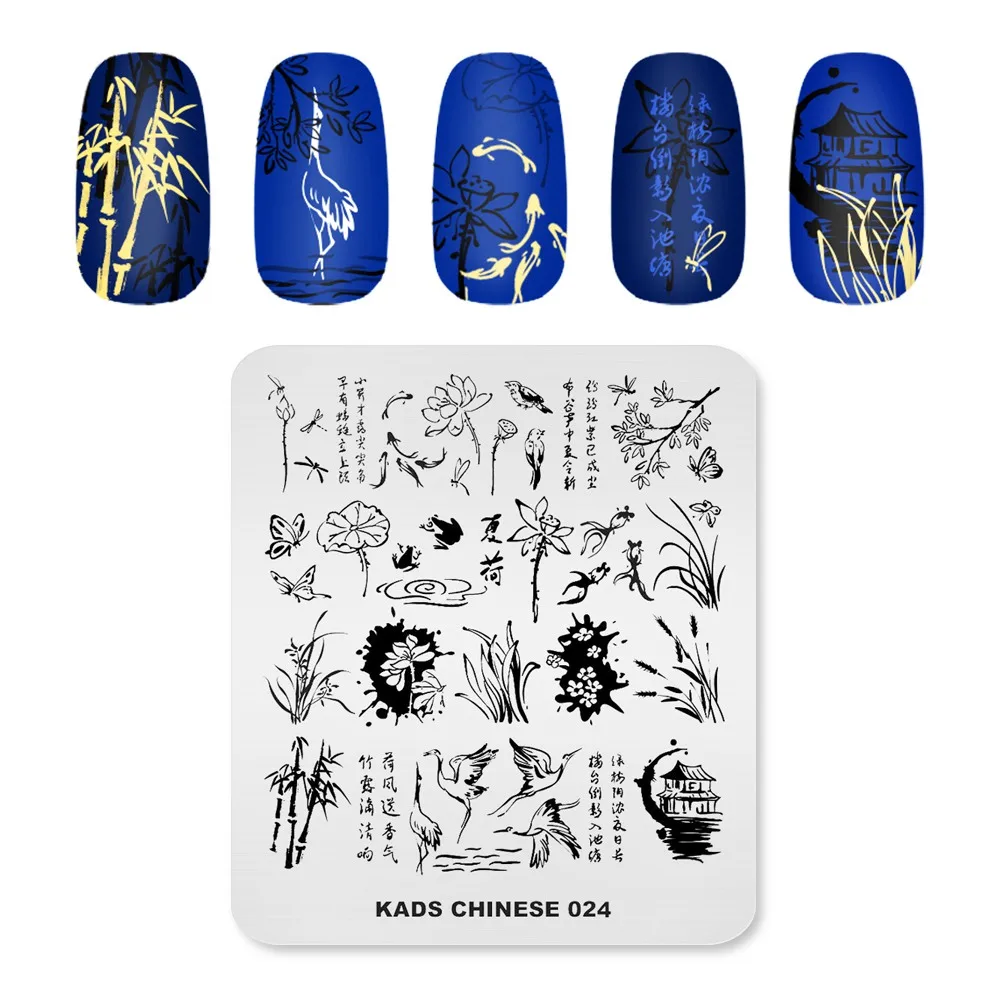 Трафареты для стемпинга ногтей, рисунок лотоса, стрекозы, стемпинг ногтей покрытие