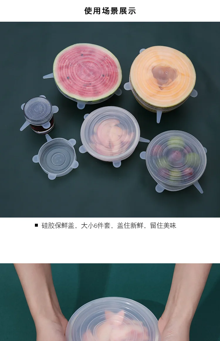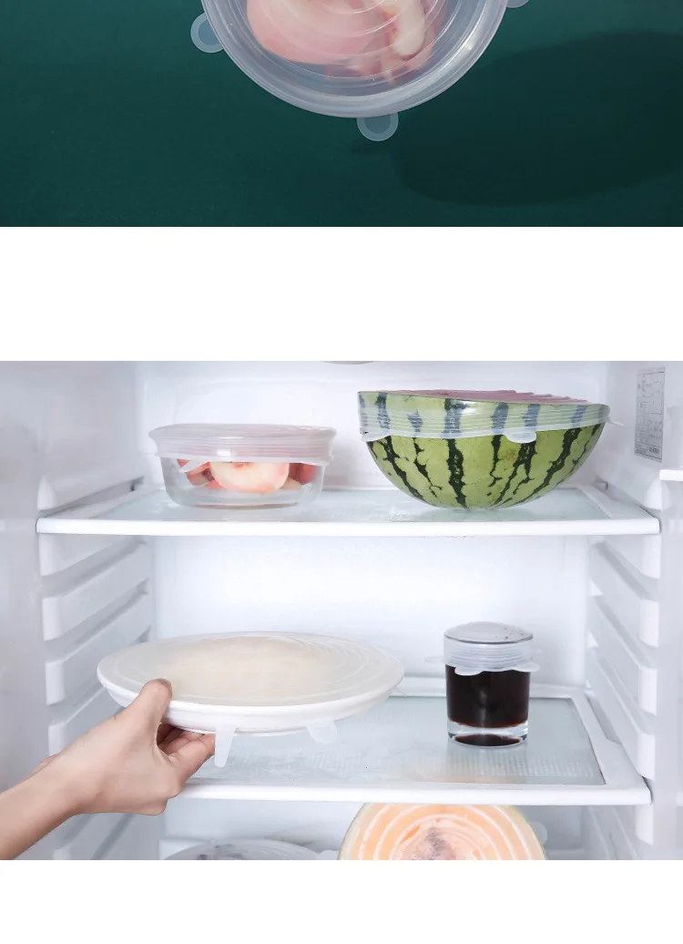 Силиконовая крышка для сохранения свежести, круглая, набор из 6 предметов, растягивающаяся Крышка для чайной чашки и чаши, пленка для сохранения свежести