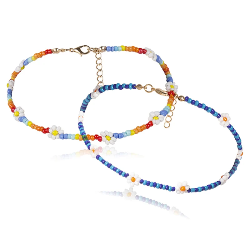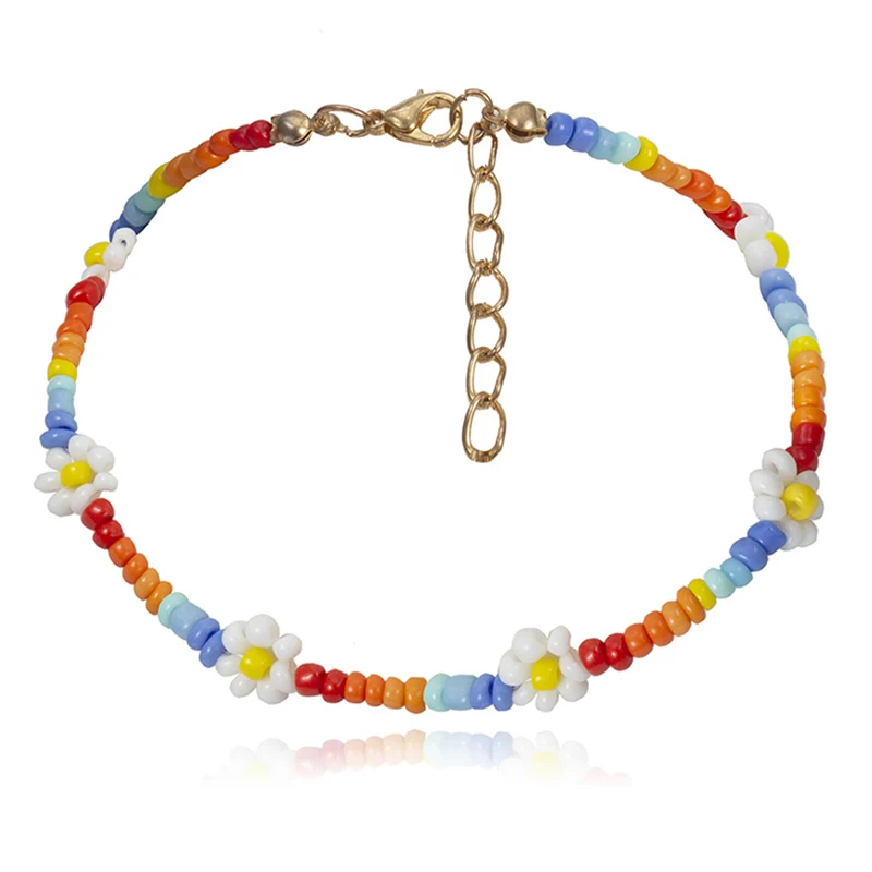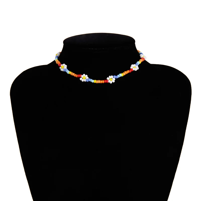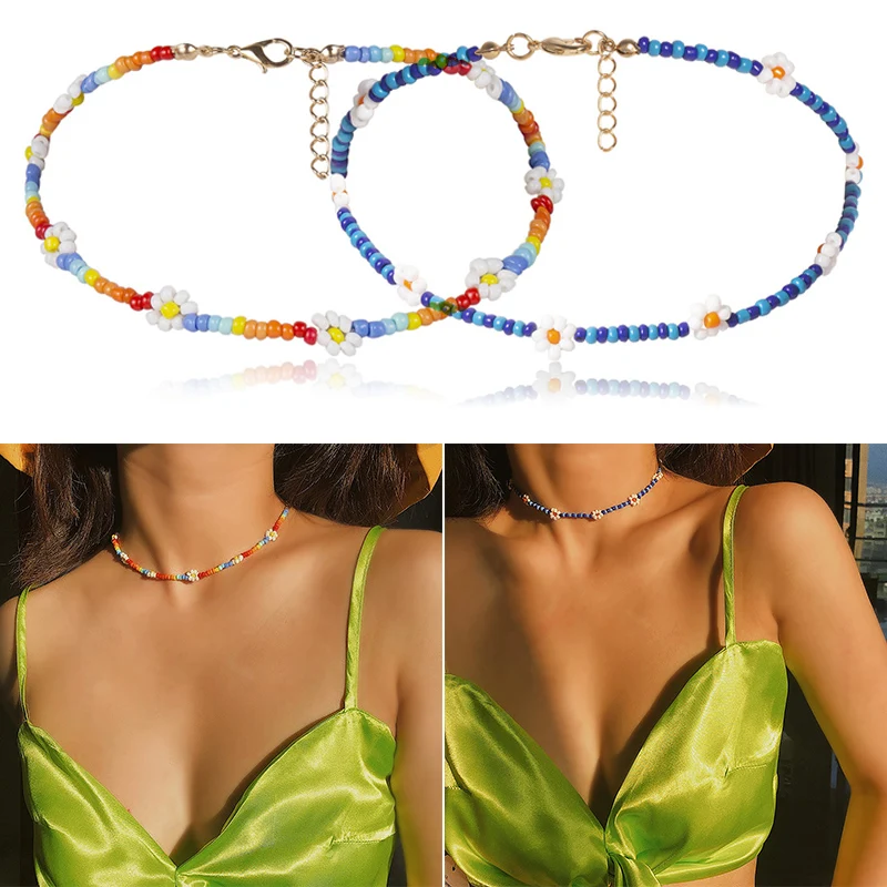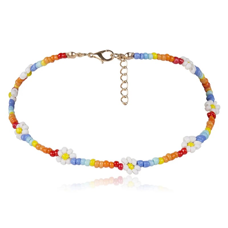 Женское Ожерелье-чокер в стиле бохо ручной работы с бусинами и цветами, Очаровательная цепочка, ювелирный подарок