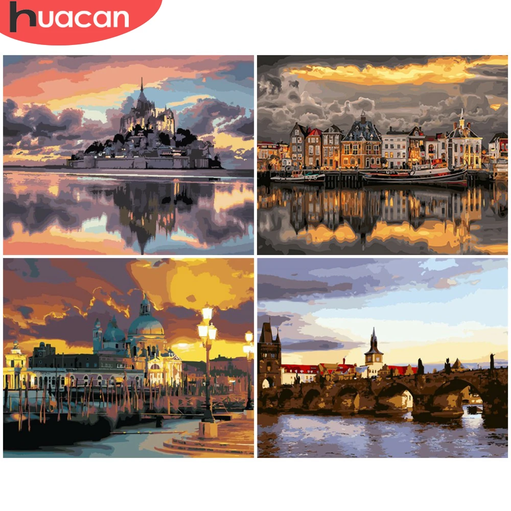 HUACAN DIY картинки по номеру город пейзажные наборы домашний декор живопись по номерам закат рисунок на холсте Ручная роспись искусство подарок