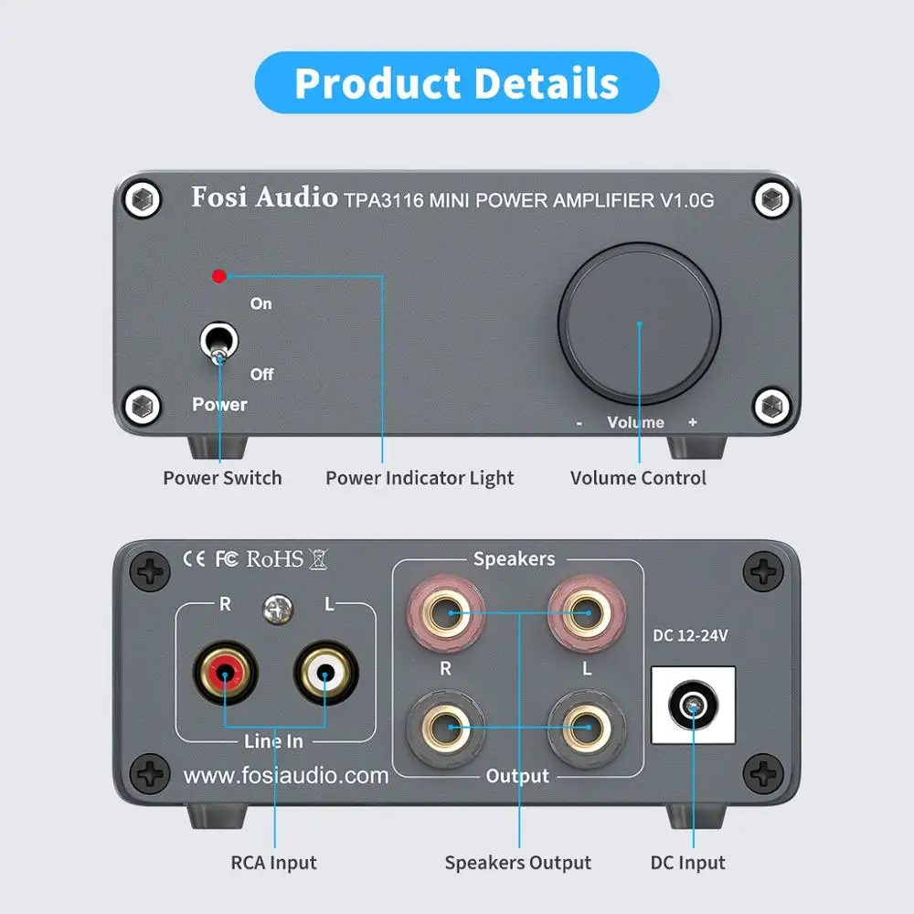 Fosi аудио V1.0 2-канальный стерео аудио усилитель мощности класса D Mini Hi-Fi профессиональный цифровой усилитель для домашних динамиков 50 Вт x2