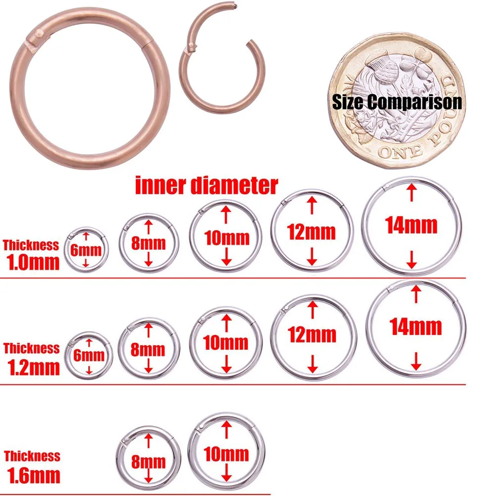 Титановое шарнирное сегментное кольцо для носа и уха, хрящевой Козелок, спиральное кольцо для пирсинга губ, кольца и штифты для носа, Радужное золото, черные украшения в стиле панк, 1 шт.