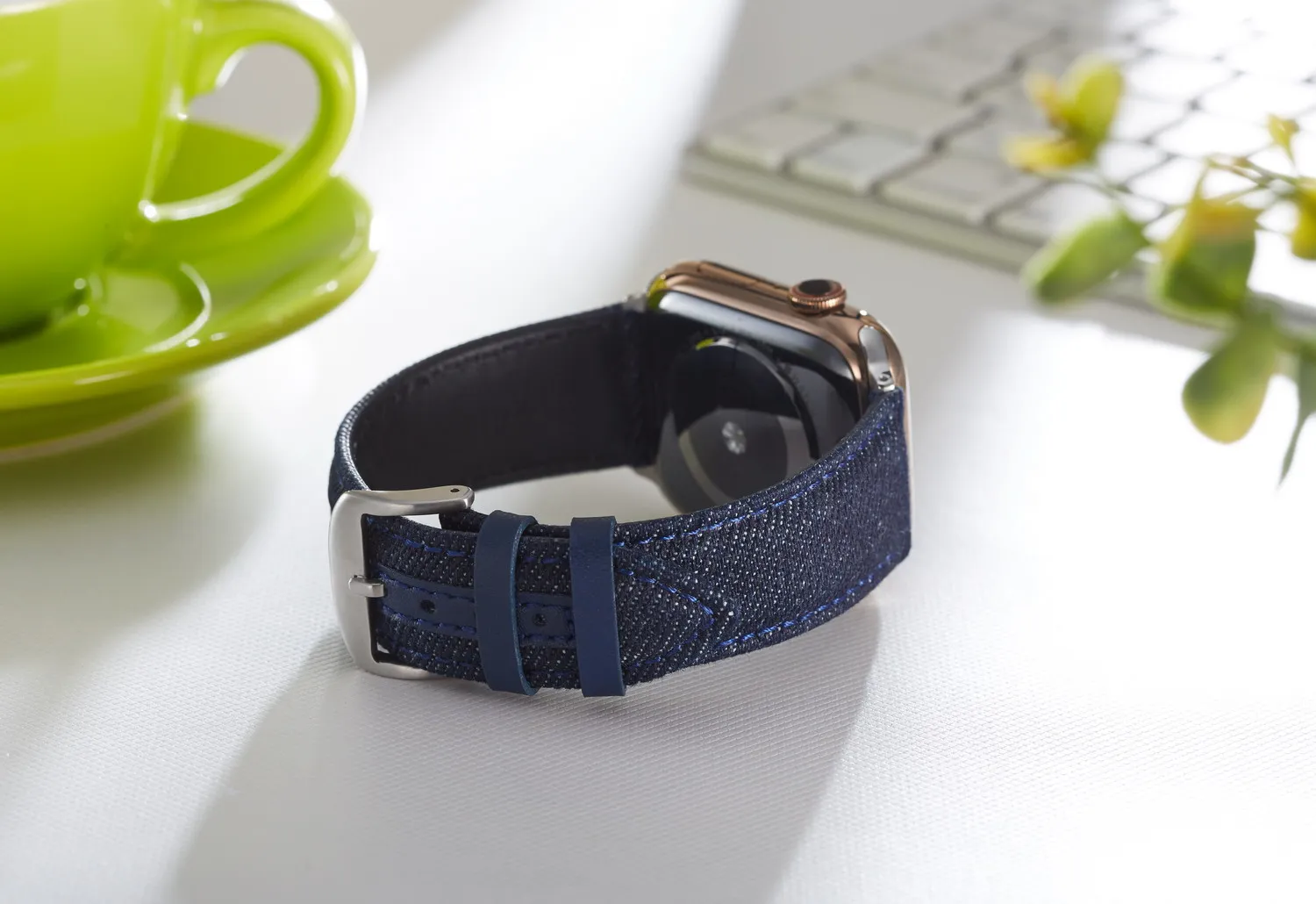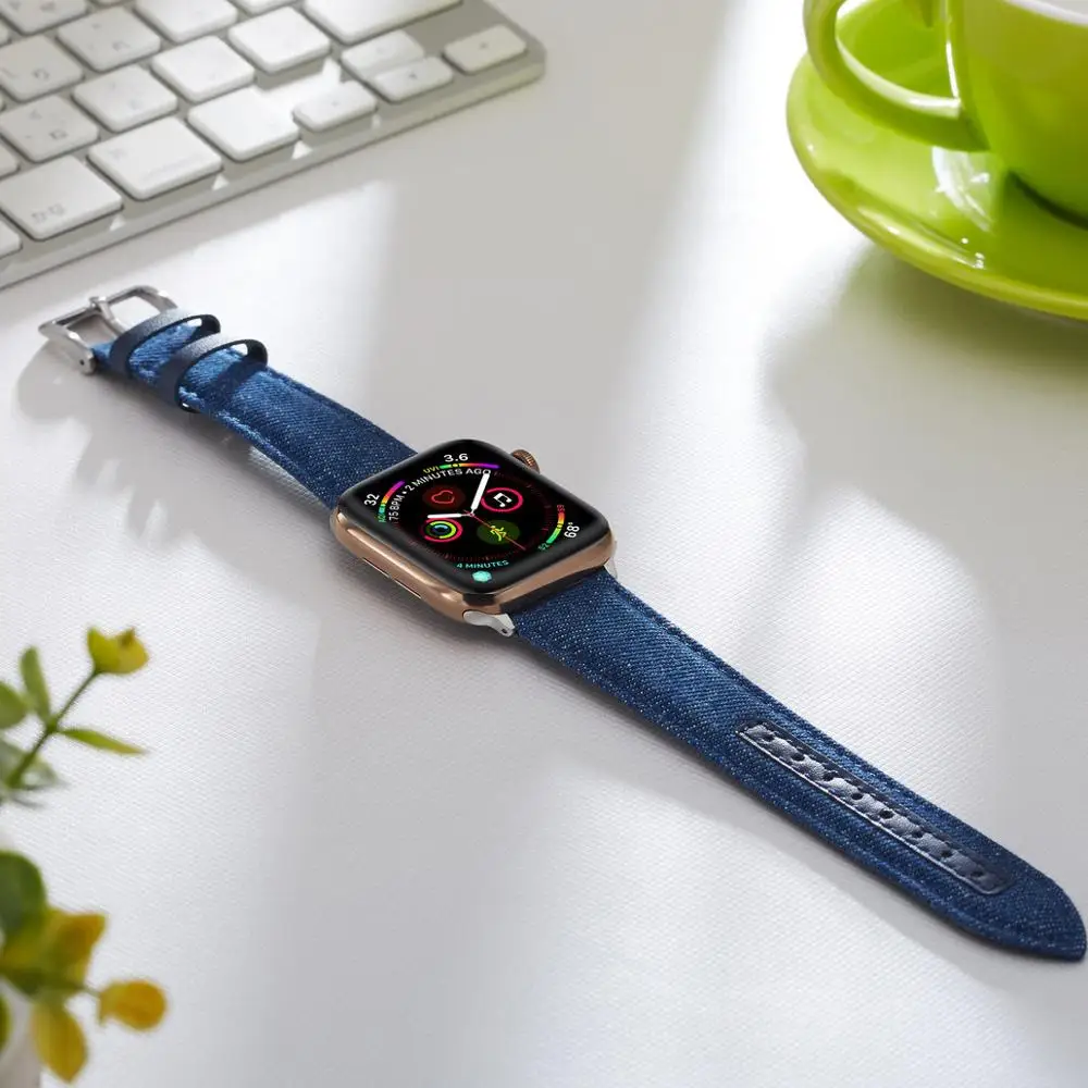 Ремешок джинсовый для Apple watch, кожаный брезентовый браслет для Iwatch series 654321SE, 42 мм 38 мм 44 мм 40 мм