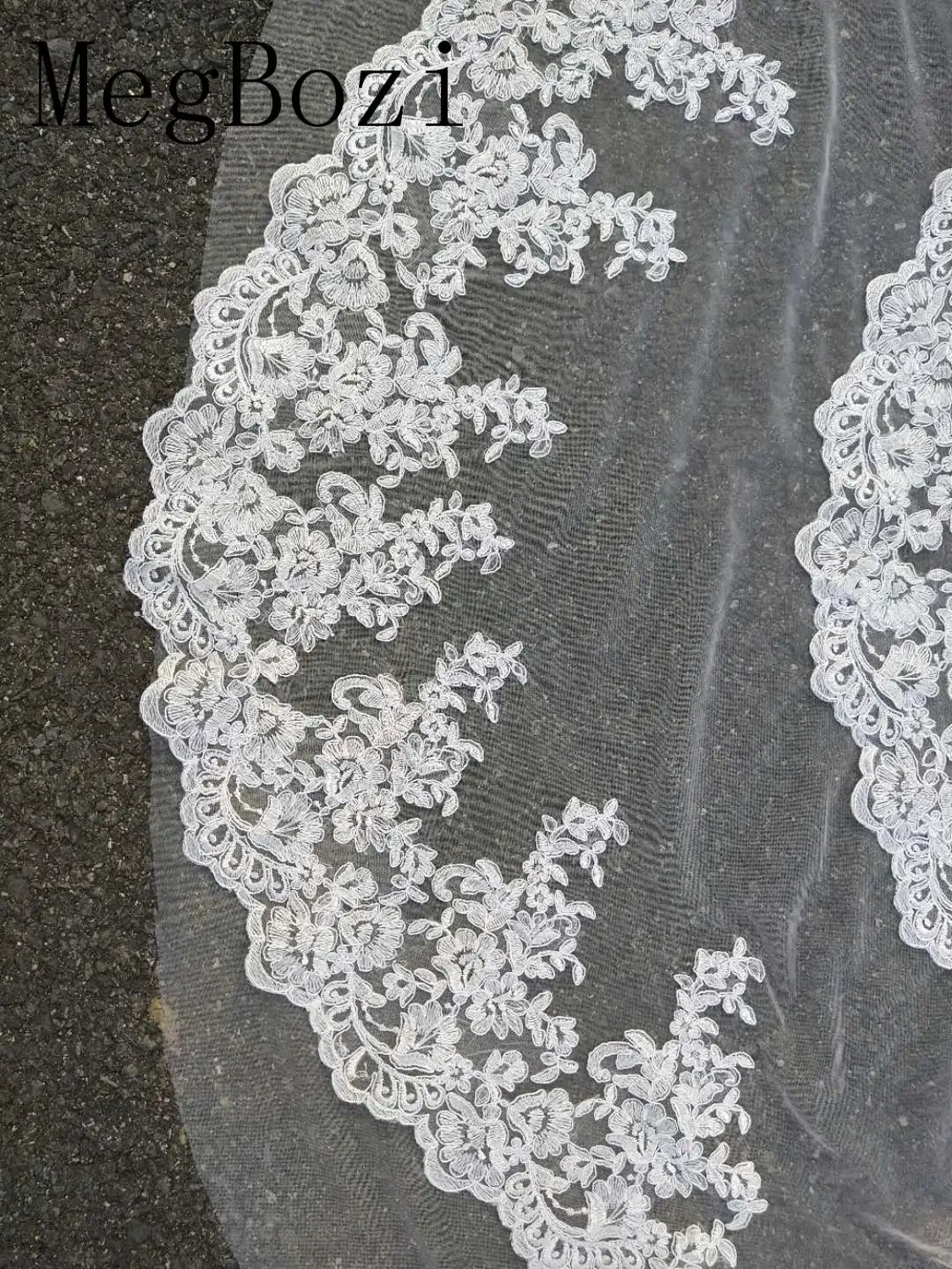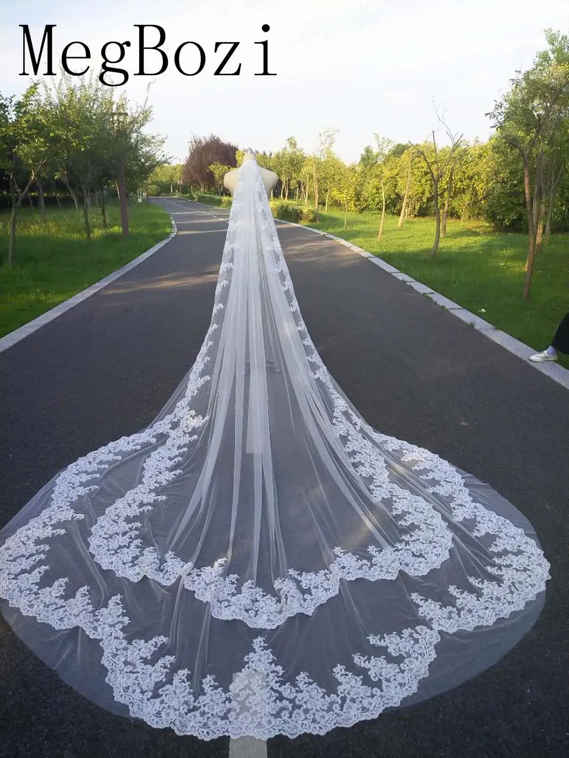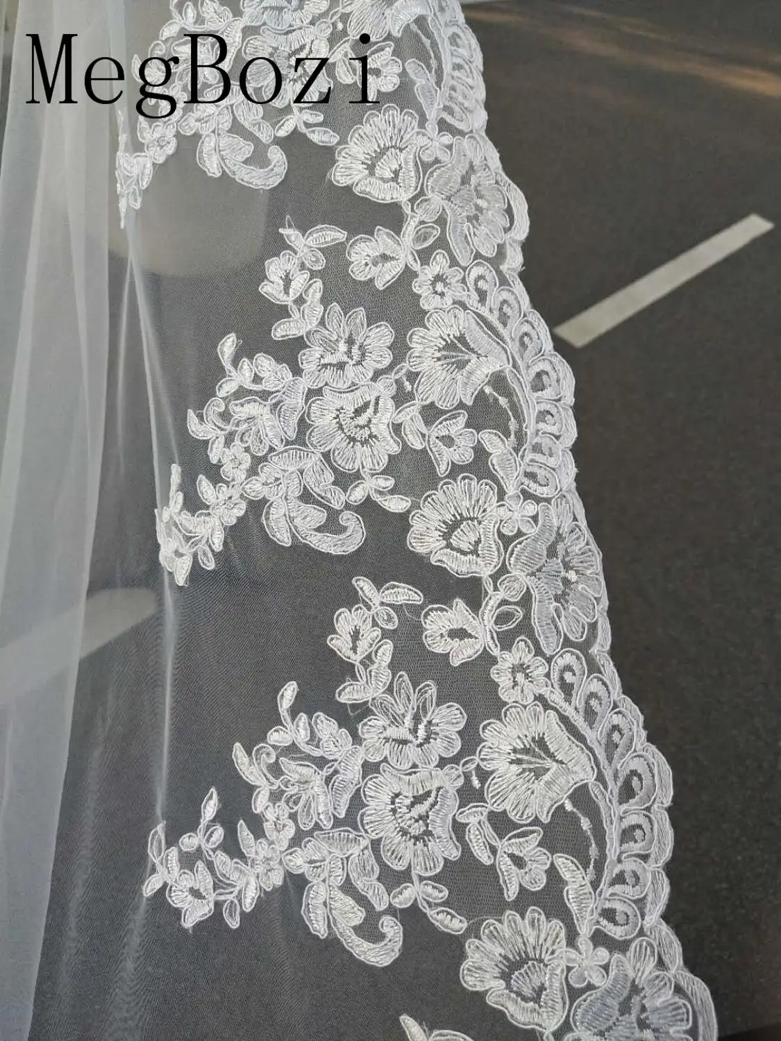 2020 белаяслоновая кость свадебная фата длинная кружевная кромка цветок роскошная аппликация храм свадебная вуаль с гребнем 35 метров velo de novia
