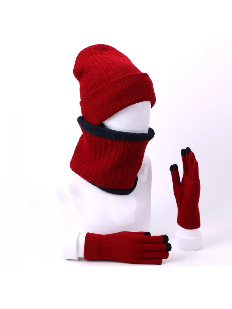 Комплект из 3 предметов, шапка и шарф, набор, женская зимняя шапка, наборы перчаток из хлопка унисекс шапка шарф перчатки Комплект из плотного натурального хлопка и шарф набор для мужчин и женщин