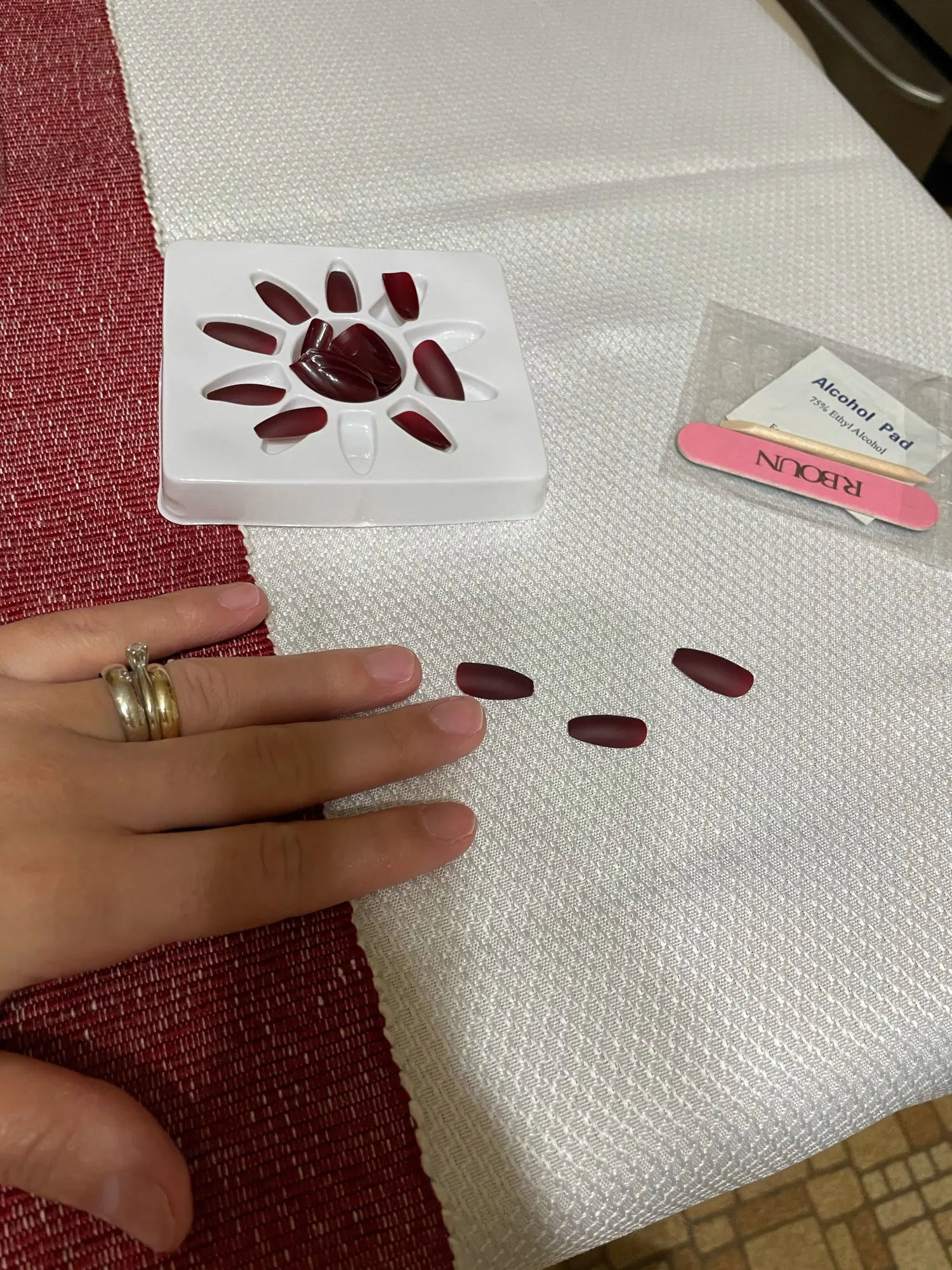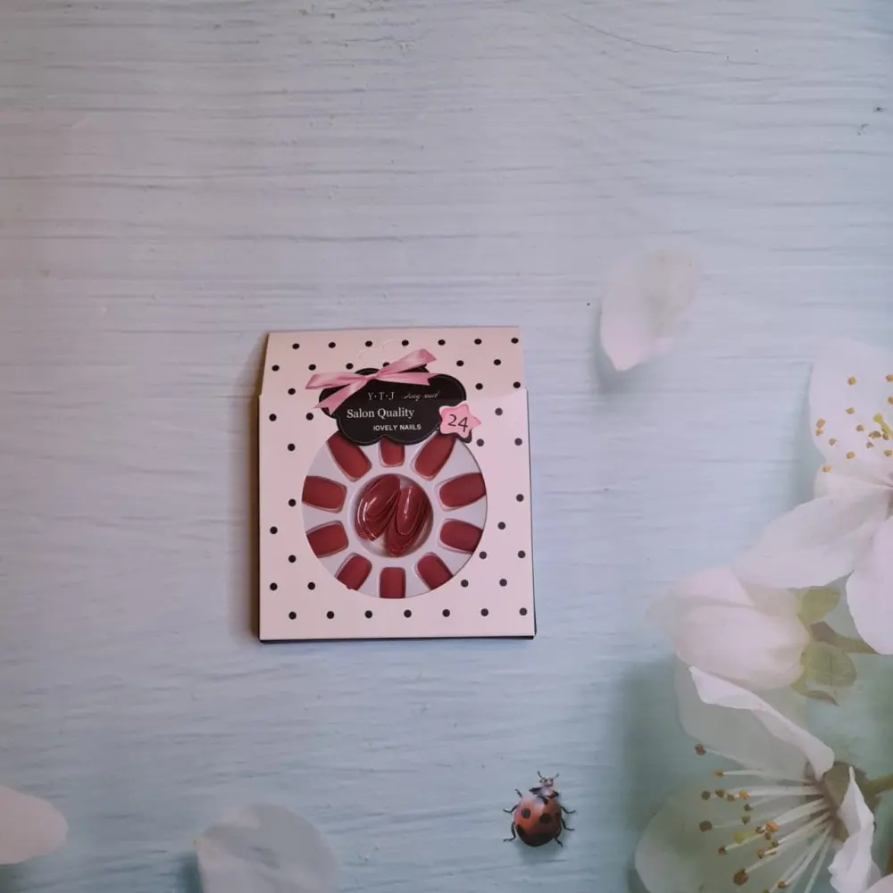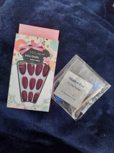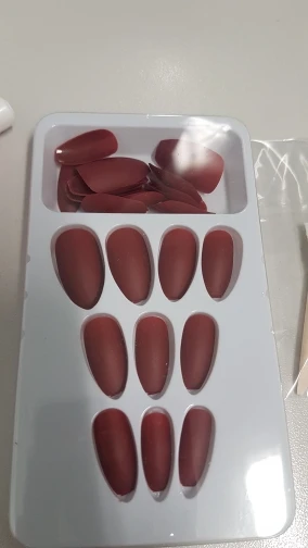 Me encantan estas uñas postizas. Vienen con unas láminas que son el pegamento para unir uña con uña postiza. Tienen un buen color y no tienen mala calidad.