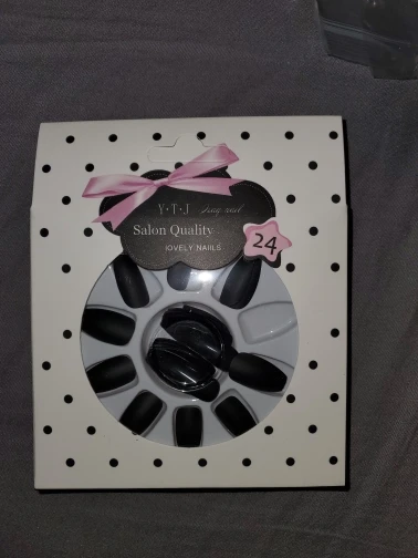 Супер качество ногтей Сверху они матовые и могут лакировать их без проблем черный, который я почил. В нем есть небольшая трубка с клеем, которая хорошо держится, я очень доволен своей кошкой, и я рекомендую всем девочкам, которые хотят поддельные ногти довольно дешево;)
