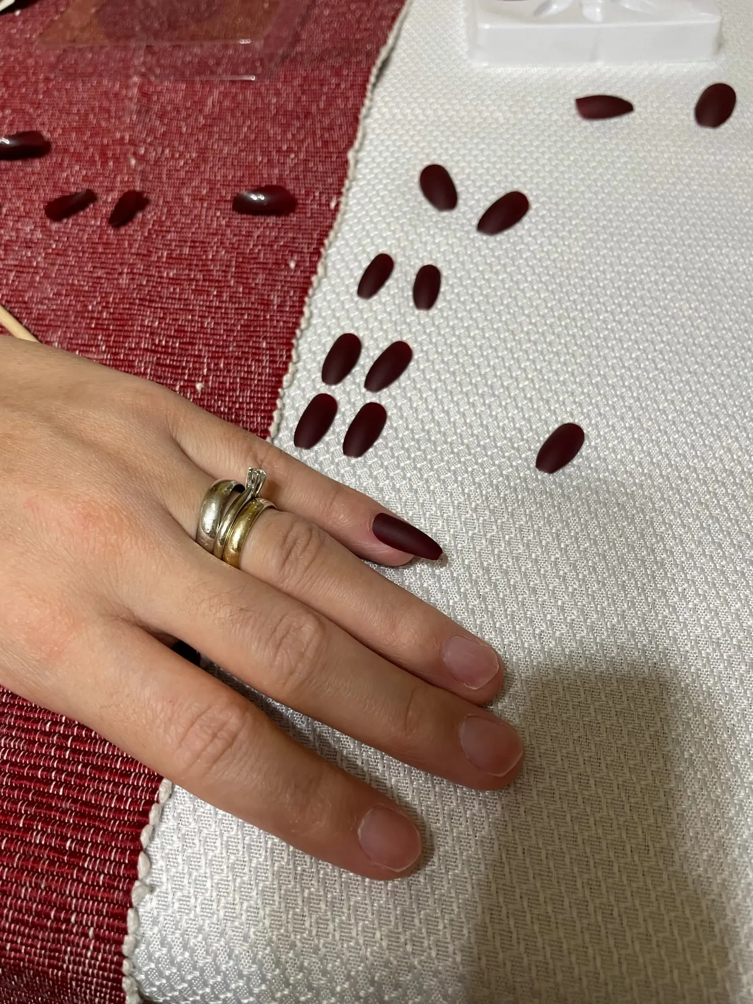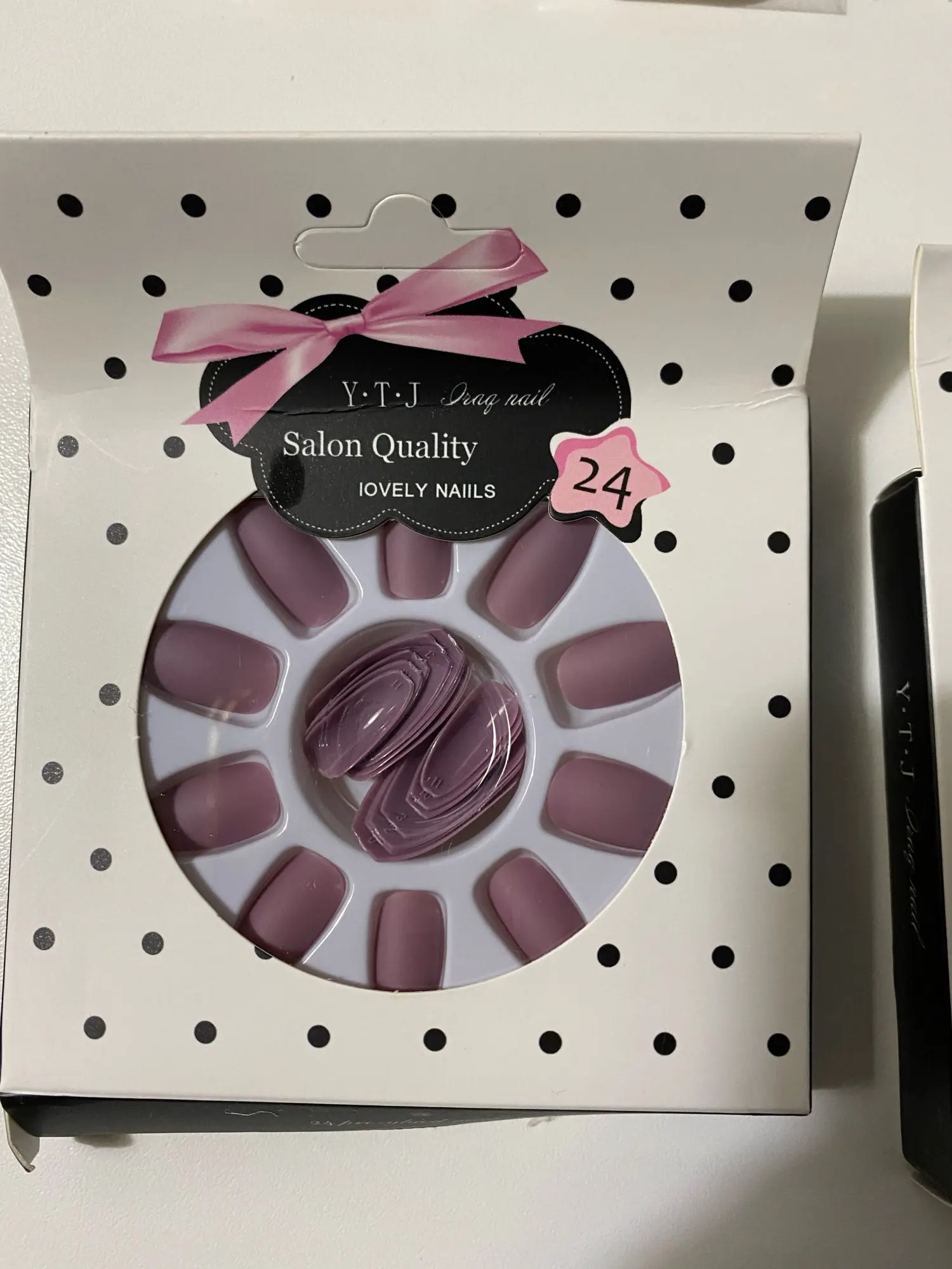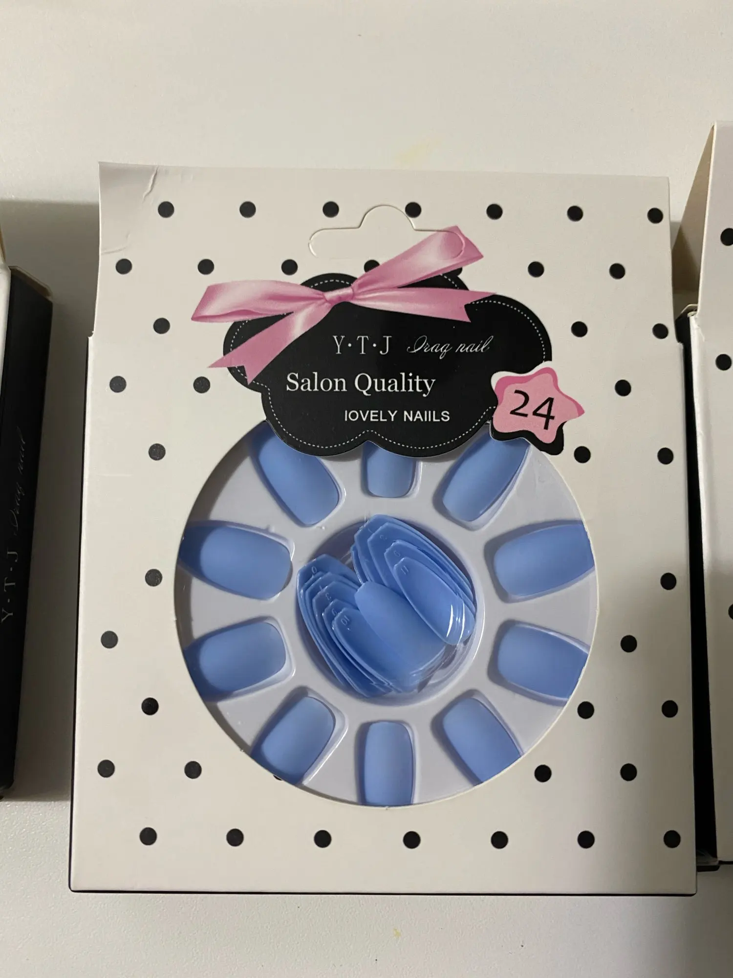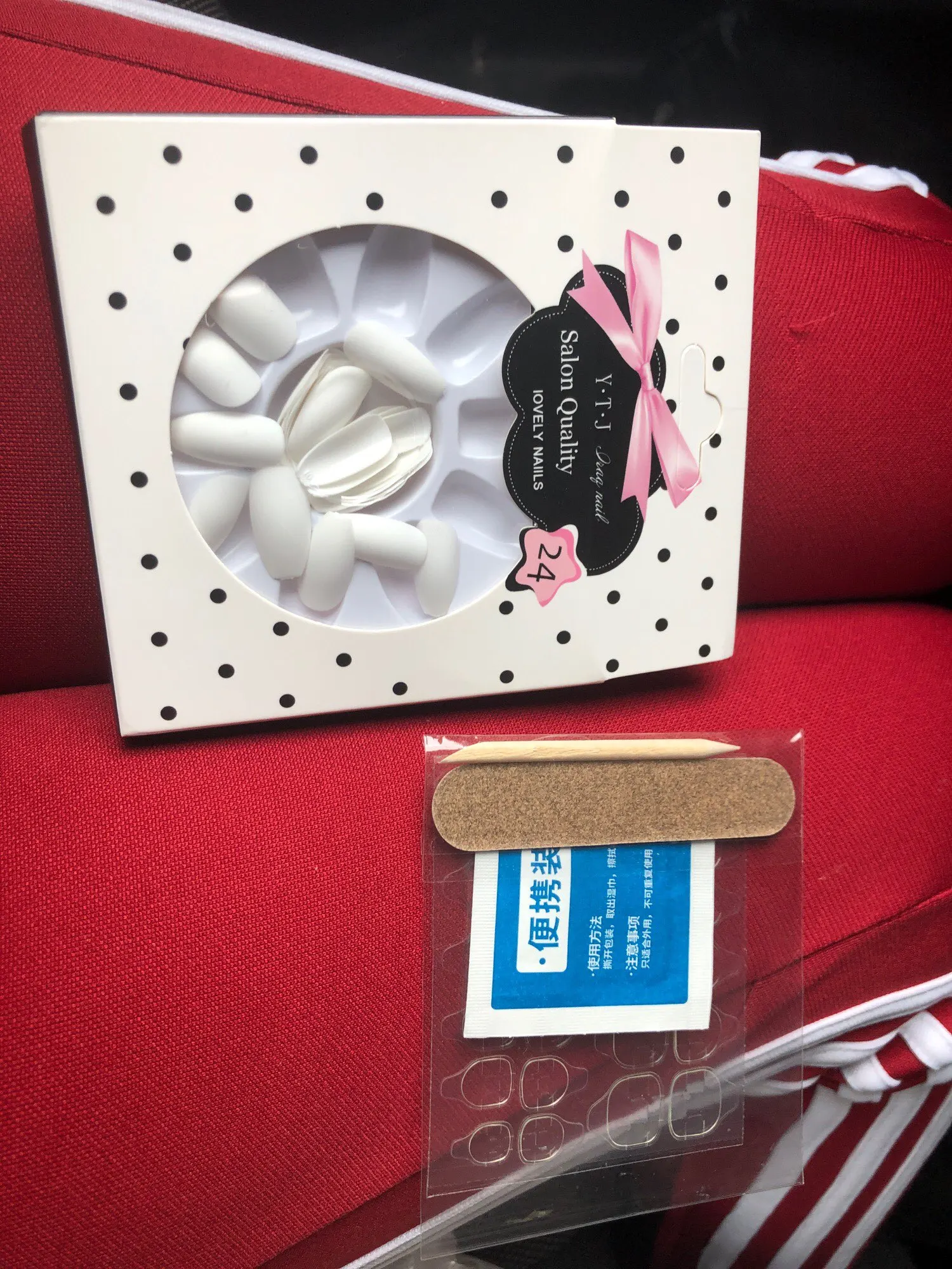 Ногти хорошие, мне понравились. Продавец прекрасный, для поклейки положил все что нужно. В комплекте 24 шт (не поняла почему именно дополнительных 4 ногтя, а не 5 к примеру...). Держатся вроде хорошо, посадила сначала на желейный клей: держались хлипко. Потом намазала сверху жидким и тогда это уже лучше. На моих пальцах натурально не смотрятся, в близи видно конечно что пластик матовый. Но носить все равно конечно же буду. Взяла их так дорого только из-за цвета, но не пожалела. Цена полностью оправдывает качество. На фото можете видеть как смотрится без приукрас. Специально сфоткала и вблизи и издалека. Сами по себе полупрозрачные немного, ну то есть мой ноготь под ними конечно видно. И конечно же как всегда основа ногтя под толстые пальцы, то есть сильно широкая, вы лучше подпилите перед поклейкой. И свой ноготь сверху немного спилите (чтоб удалить немного пластины и лучше держалось). В общем в целом я конечно же довольна. Рада что продавец не скупился на клей, оформление и запаски