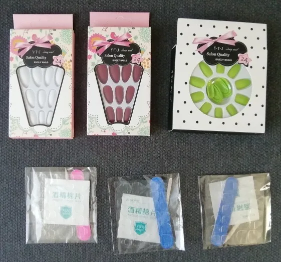Шёл относительно долго(заказала 22.11), пришли как на картинке, в наборе есть клей. В целом довольна, могу рекомендовать.(на некоторых ногтях есть неровности, но их можно убрать при помощи пилочки)