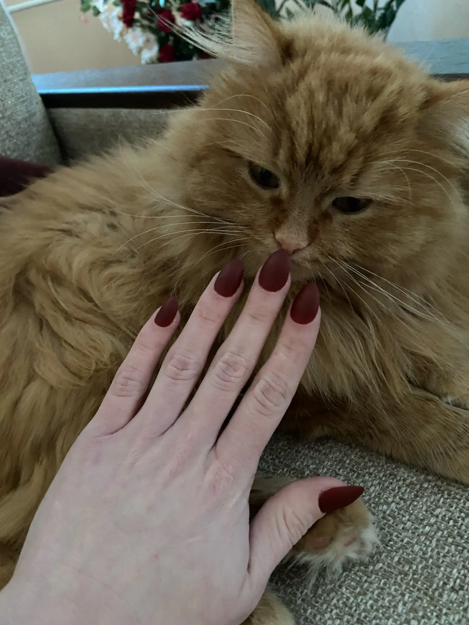 Просто отличные ногти! Форма, качество, цвет. Все на высшем уровне. За такую цену просто замечательно! Конечно, отклеился один ноготь на 2 день носки, но тут дело в клее. Лучше купить профессиональный, ну или просто любой хороший. В комплекте так же идёт маленькая удобная пилочка, апельсиновая палочка и наклейки (которые лично у меня вообще не держали). Цвет отдаёт немного в коричневый. В целом покупкой очень довольна, обязательно закажу ещё! Кошка тоже оценила)