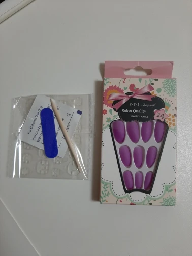 Супер быстрая доставка, всего 10 дней до Питера, вообще такого не ожидала Ногти очень хорошие! Цвет прислали темнее чем на фото. Заказывала розовые, а пришли пурпурные, но они тоже красивые. В комплекте идёт маленький тюбик клея. Ещё продавец положил дополнительно липучки для ногтей, пилочку, палочку для кутикулы и обезжиривающую салфетку.
