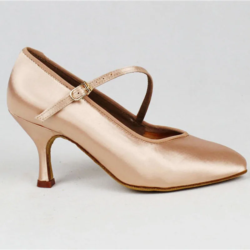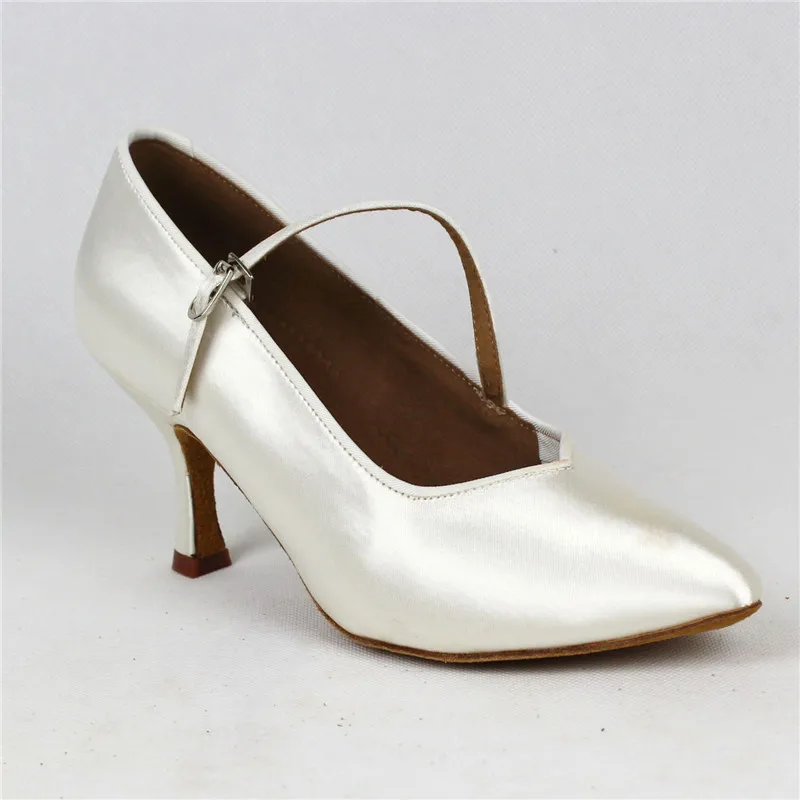 Закрытый носок BD138 женщины Stardard танцевальная обувь белая телесная 2,5 дюймовая устойчивая практика обувь для латинских бальных танцев для девушек