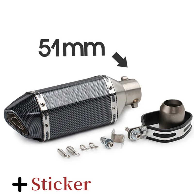 Это универсальная Модифицированная выхлопная труба мотоцикла, она подходит для моделей мотоциклов калибра 51 мм (с адаптером 36-51 мм). Этот продукт был изготовлен из высококачественной нержавеющей стали и Украшен узором из углеродного волокна. Отличное качество изготовления и хорошая текстура. Для очень немногих моделей установка может потребовать простой сварки и сборки.