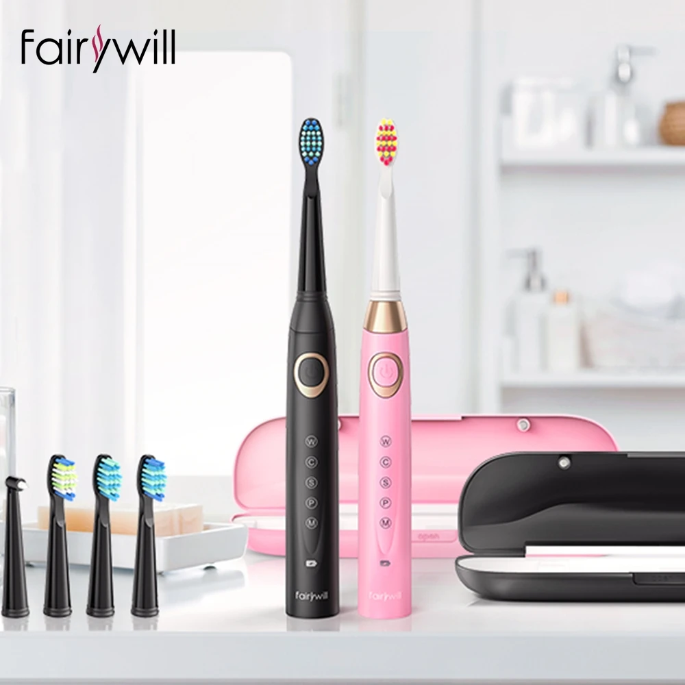 Зубная щетка Fairywill электрическая для взрослых, Мощная Ультразвуковая перезаряжаемая с таймером и USB-зарядкой, моющаяся, для отбеливания зубов