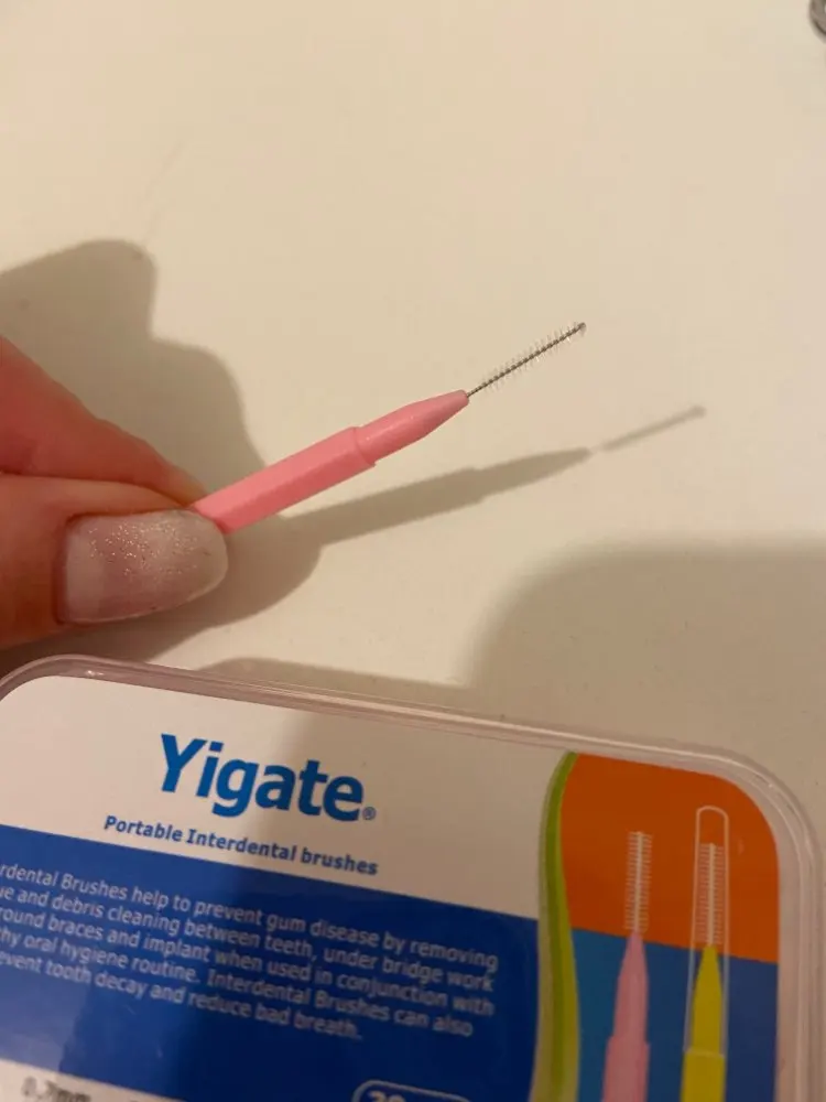 Инструкции:Поместите межзубную щетку на зубы и медленно перемещайте щетку назад и вперед на зубной щель, чтобы удалить остатки пищи между зубами.После каждого использования очистите межзубную щетку водой и поместите ее в сухое место. Когда щетинки согнуты, их следует заменить.