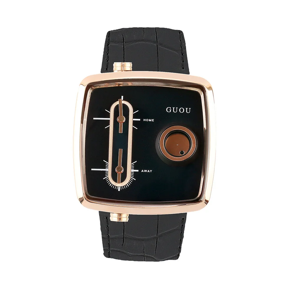 Часы GUOU мужские, модные, повседневные, с кожаным ремешком, квадра...