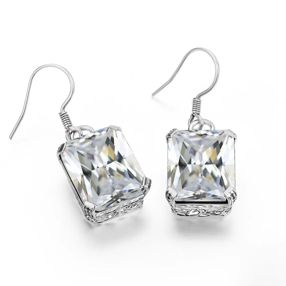Подлинной стерлингового серебра 925 Серьги для женщин, Гламурная, блестящее циркониевое сверкающие выращенные лабораторно алмазы роскошных трендовых, хорошее ювелирное изделие, Новинка