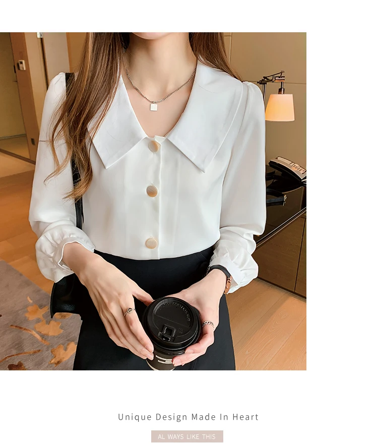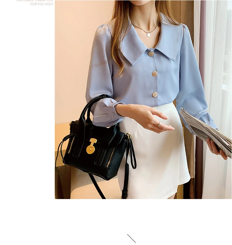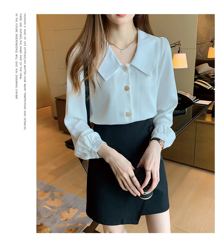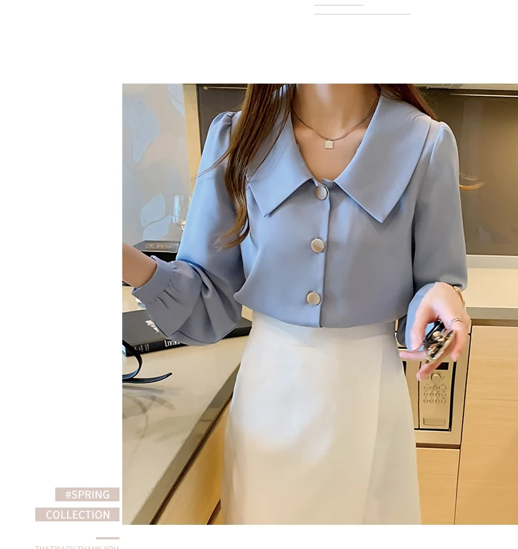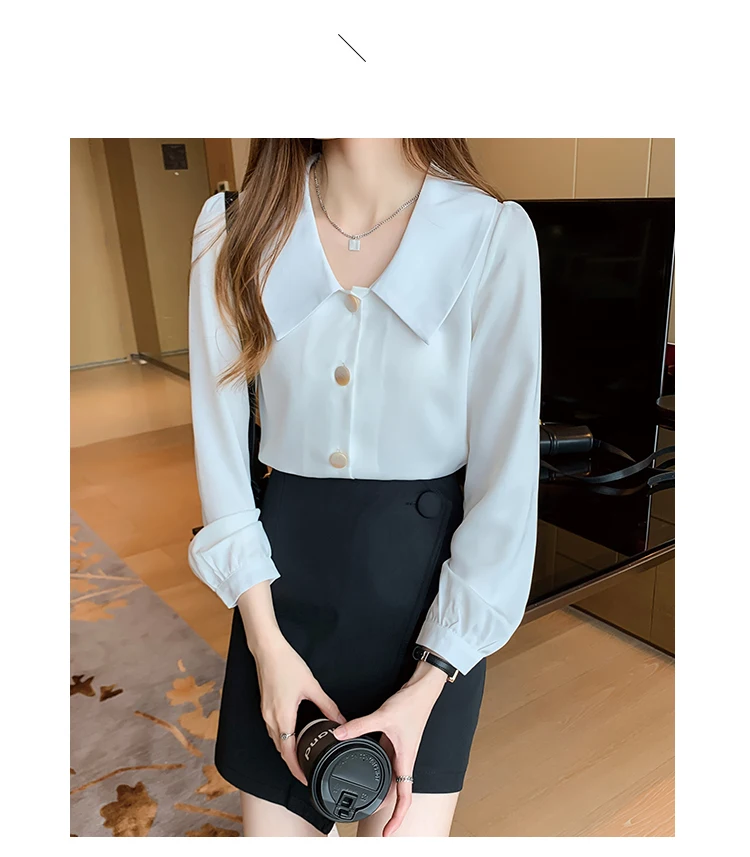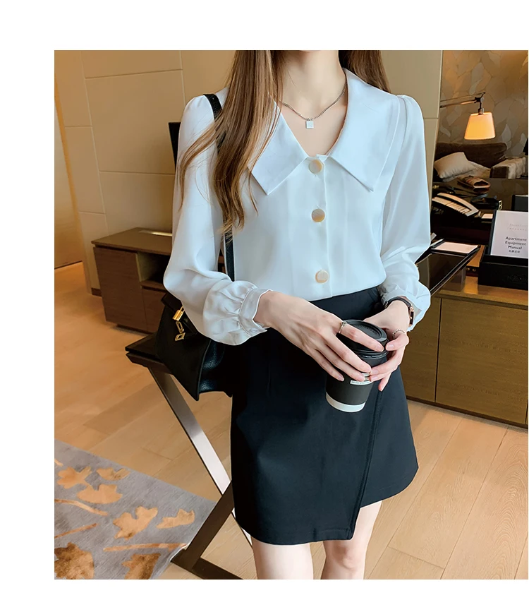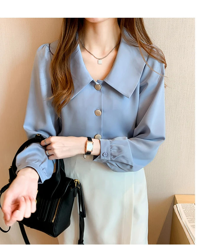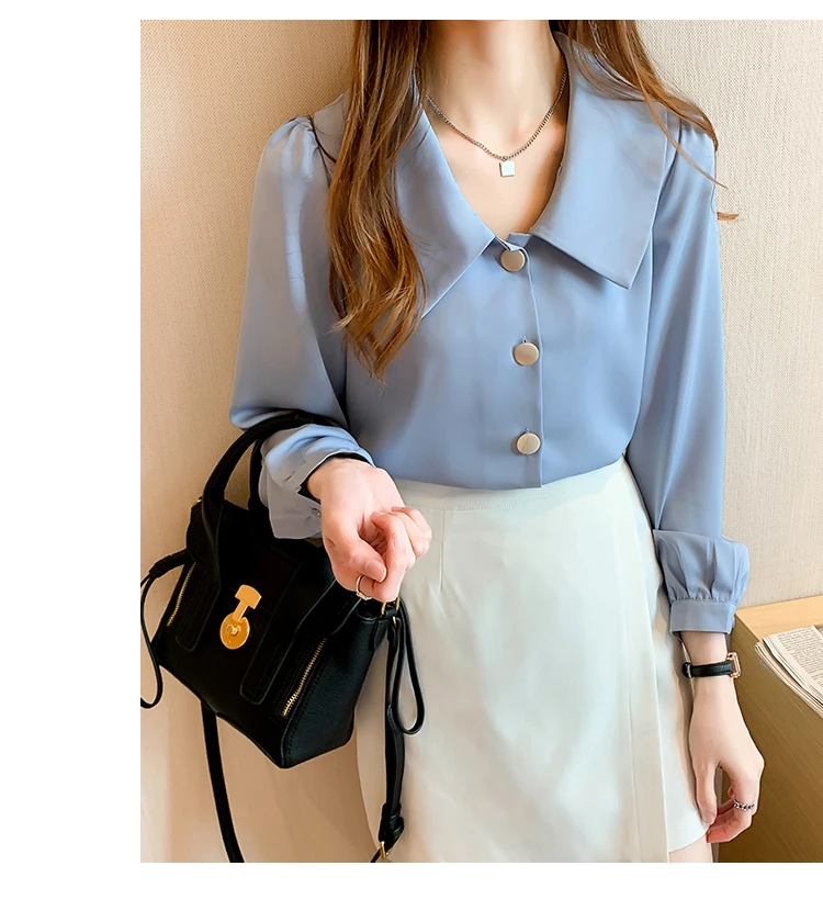 Белая рубашка Shintimes на пуговицах, Женская винтажная одежда, осень 2022, синяя шифоновая блузка с длинным рукавом, женские топы, рубашка для женщин
