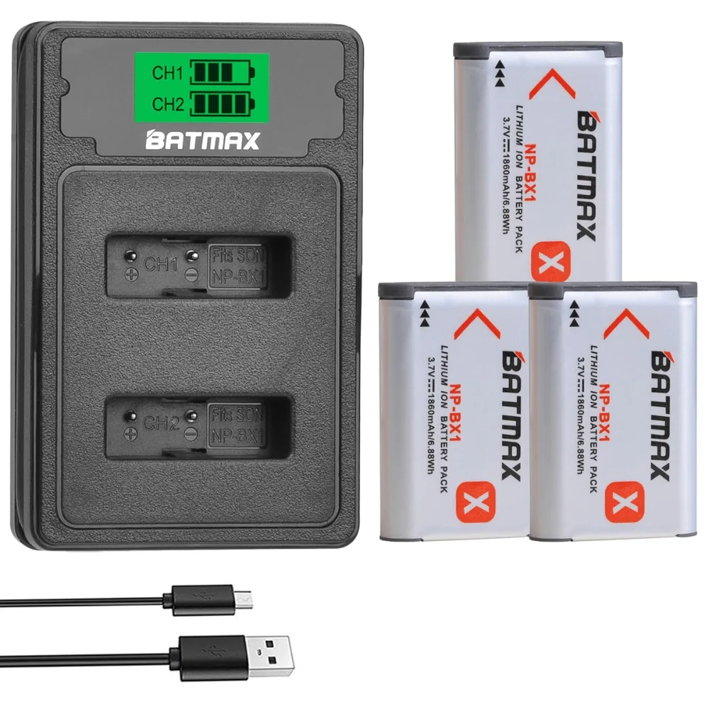 Batmax 1860mAh NP-BX1 NP BX1 NPBX1 батарея + LCD двойное зарядное устройство с портом типа C для Sony FDR-X3000R RX100 AS100V AS300 HX400 HX60 AS50 WX350 AS300V ZV-1 Log